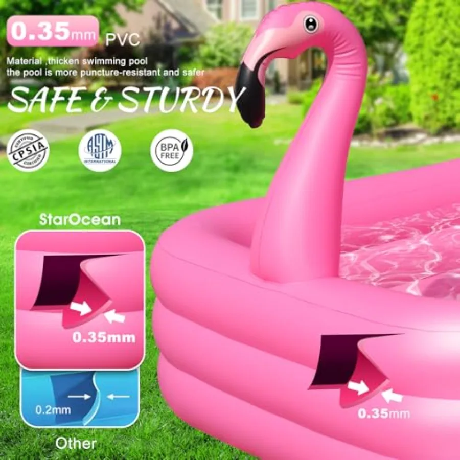 2026 Inflatable Pool with Lights Solar Flamingo Swimming Pool for Adults Durable Thickened Pool for Backyard Outdoor 100X63X20