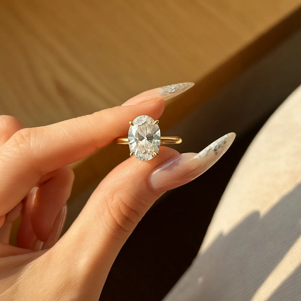 2026 New Personalized Fashion Oval Diamond Ring, Classic Four-claw Wedding Ring, Female