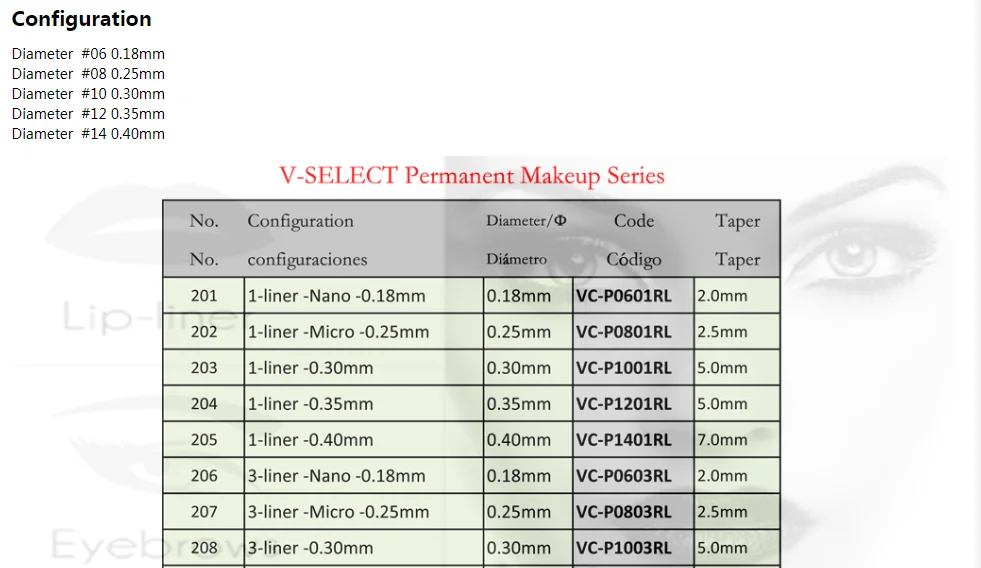 • SMP V Select Permanent Make-Up :The needles are designed to provide a precise and accurate tattoo, ensuring that the client’s desired design is achieved.