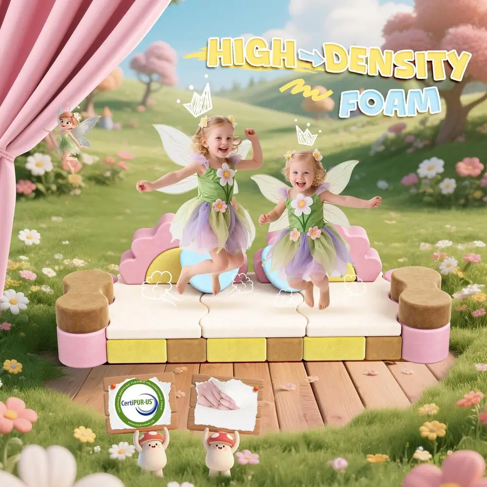 The Flower World Themed Design 23 pcs modular kids play couch, beautifully designed, sparks imagination. Featuring warmtoned, fashionforward colors, it inspires creative storytelling, roleplaying adventures, and unlimited builds.