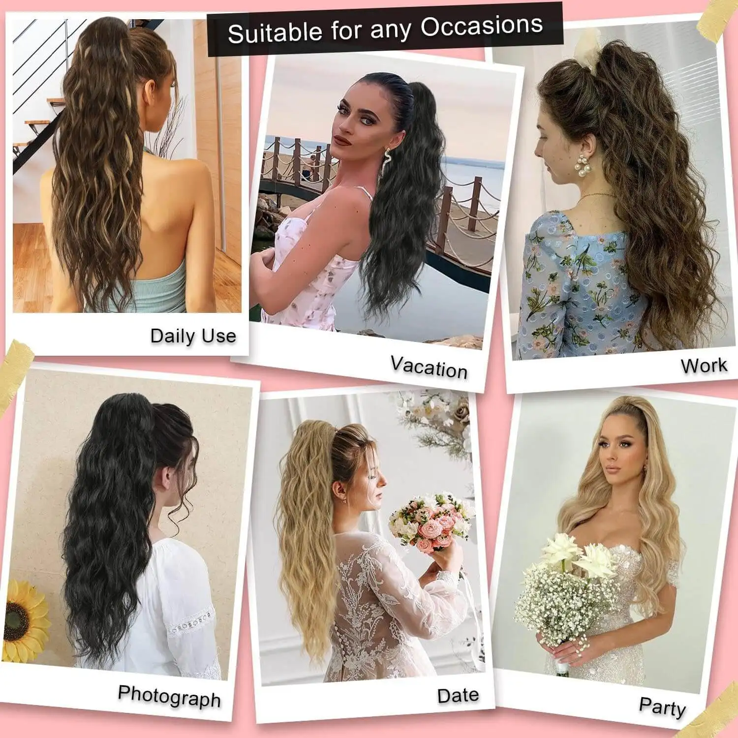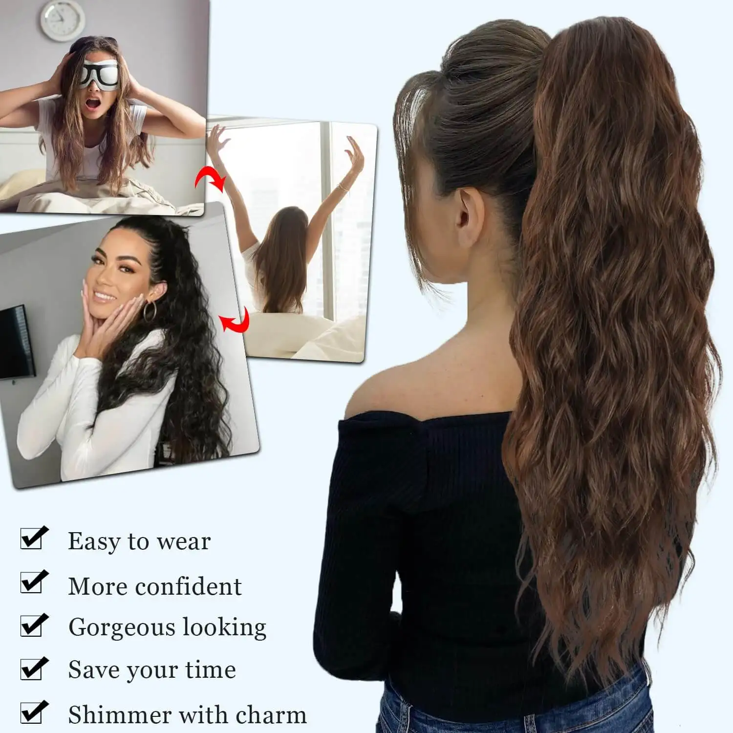 26inch Synthetic Long Curly Wavy Ponytail Extension Drawstring Ponytail Hair Extensions for Women Hairpiece for Daily Use Party