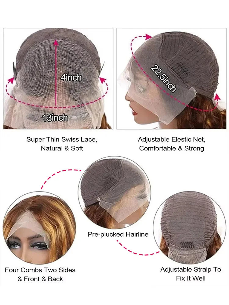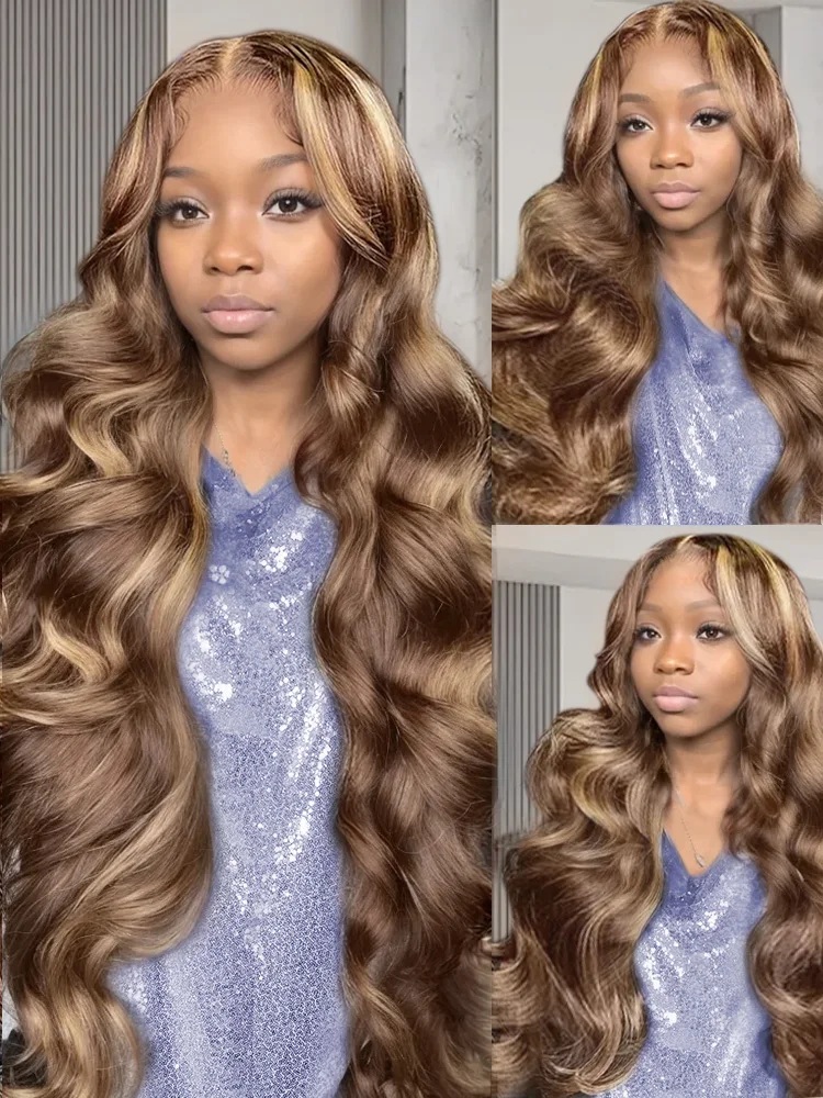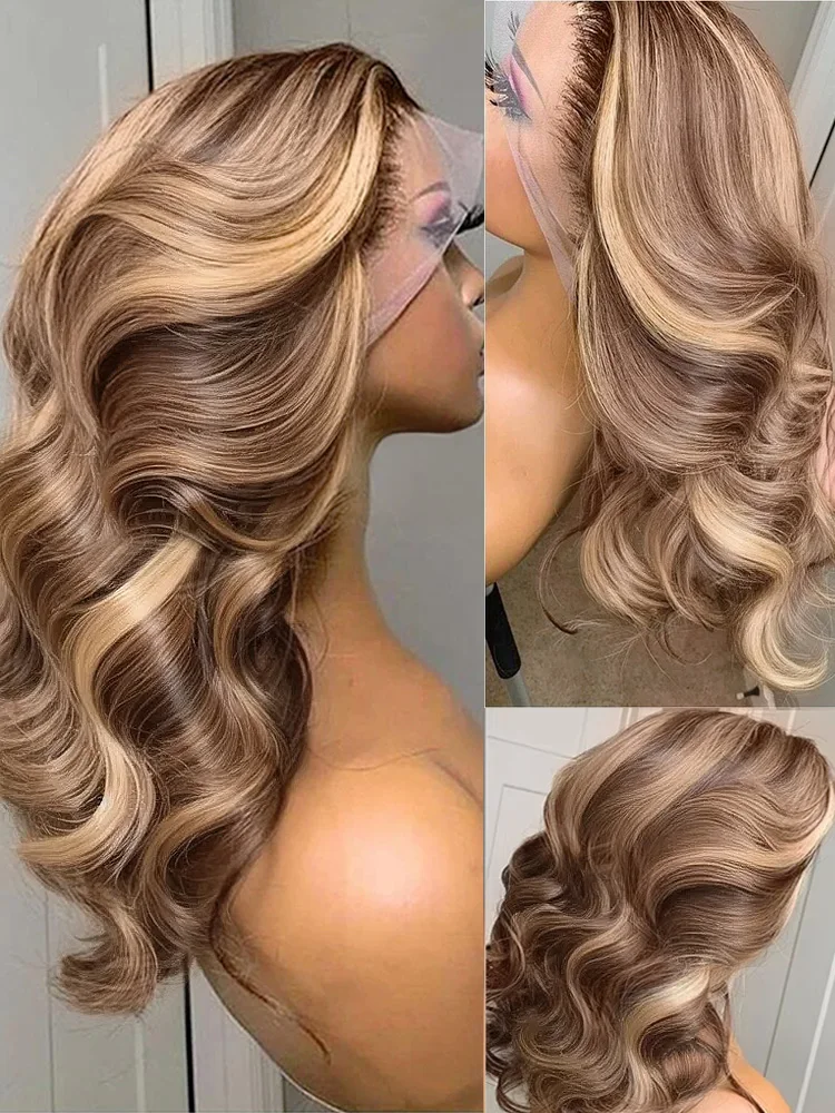 28 30 32 Inch Body Wave 13×6 Highlight Ombre Lace Frontal Wigs HD 13×4 200 Density 427 Lace Front Human Hair Wig Brown Brazilian