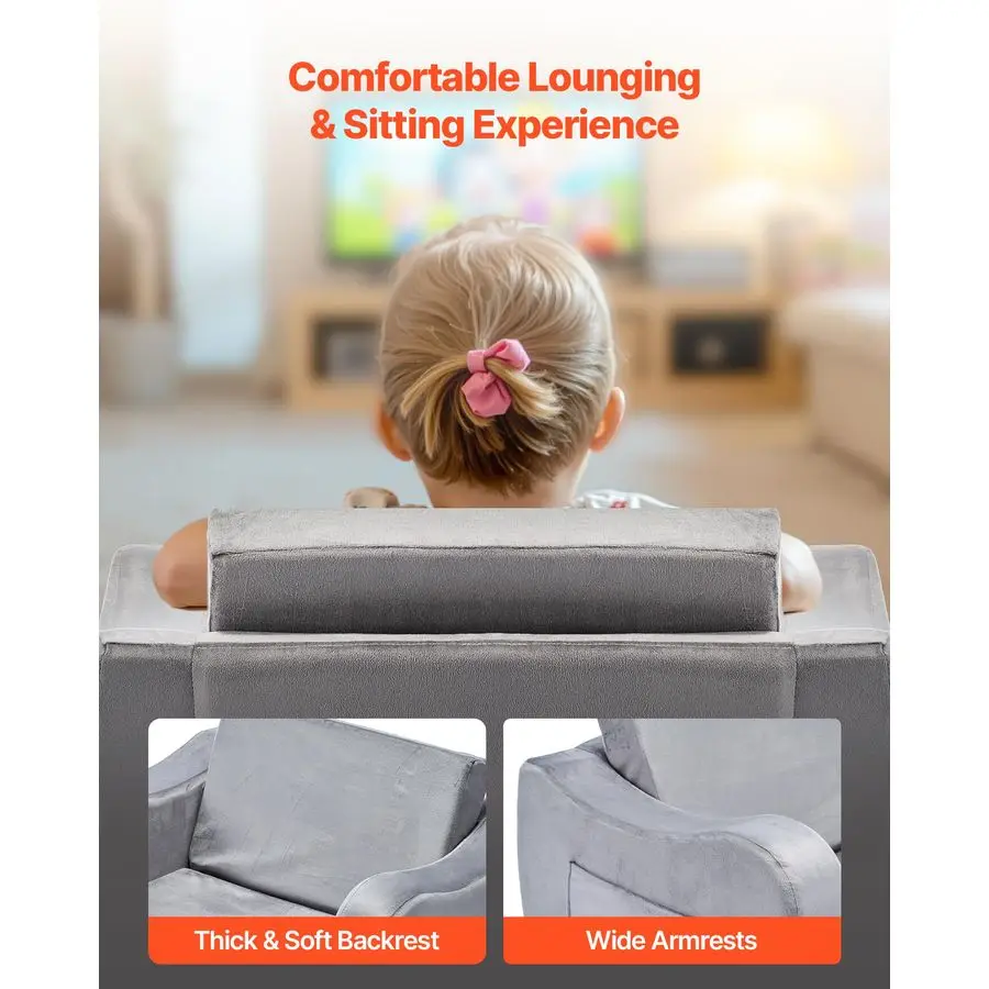2in1 Kids Sofa, Foldable Toddler Couch with Armrests, Made of 28D Sponge amp Short Pile, Convertible Toddler Chair to Lounger,