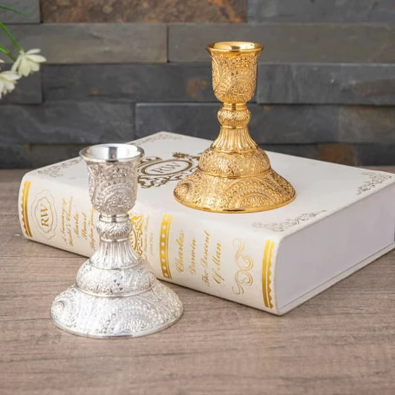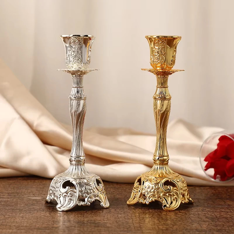 2pc European Style Metal Candlestick Candles Holders Gold Silver Dropshipping Wedding Ramadan Eid Religion Decorations Home