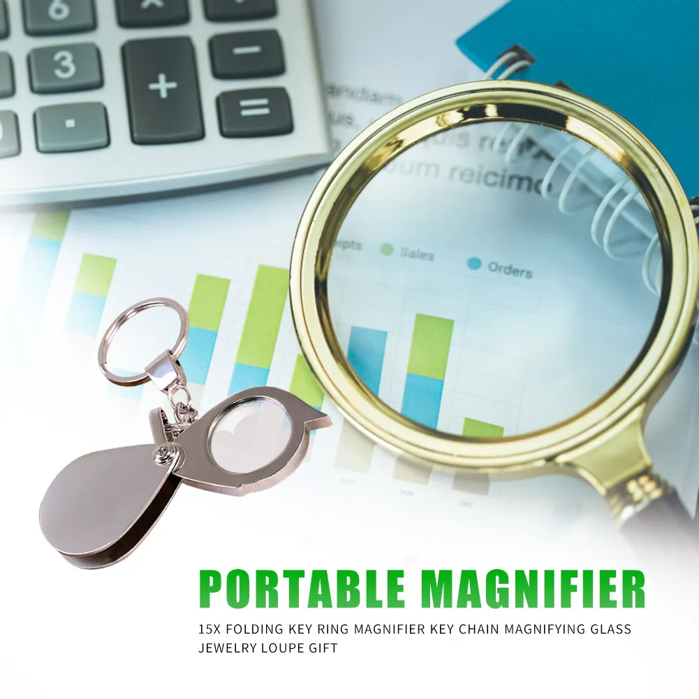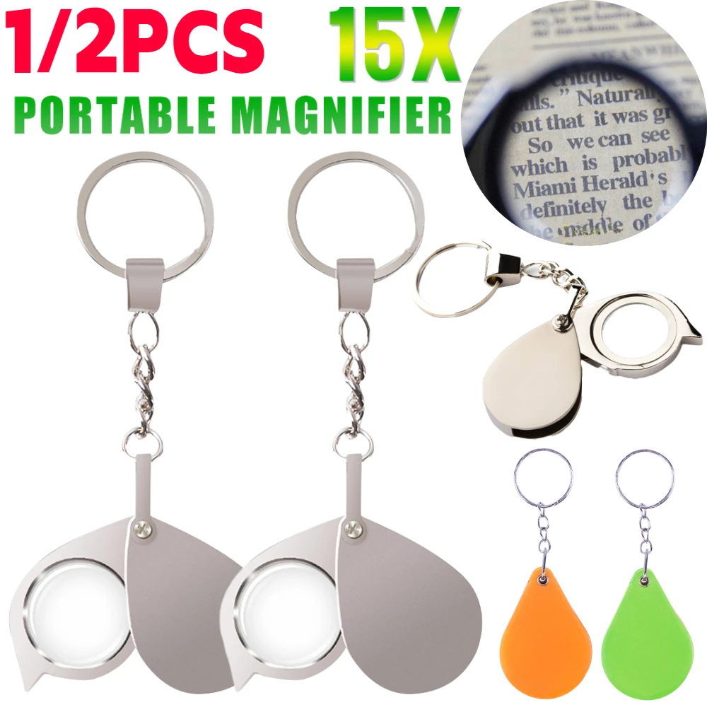 Portable 15X Folding Key Ring Mini Magnifier Key Chain Magnifying Glass Loupe Jewelry Pocket Tool Gift
