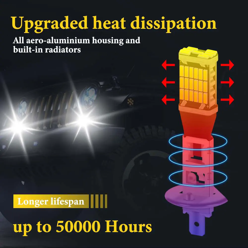 2PCS H1 H3 4014 45SMD LED Bulbs Fog Light Super Bright Driving DRL Auto Lamp 12v Universal White