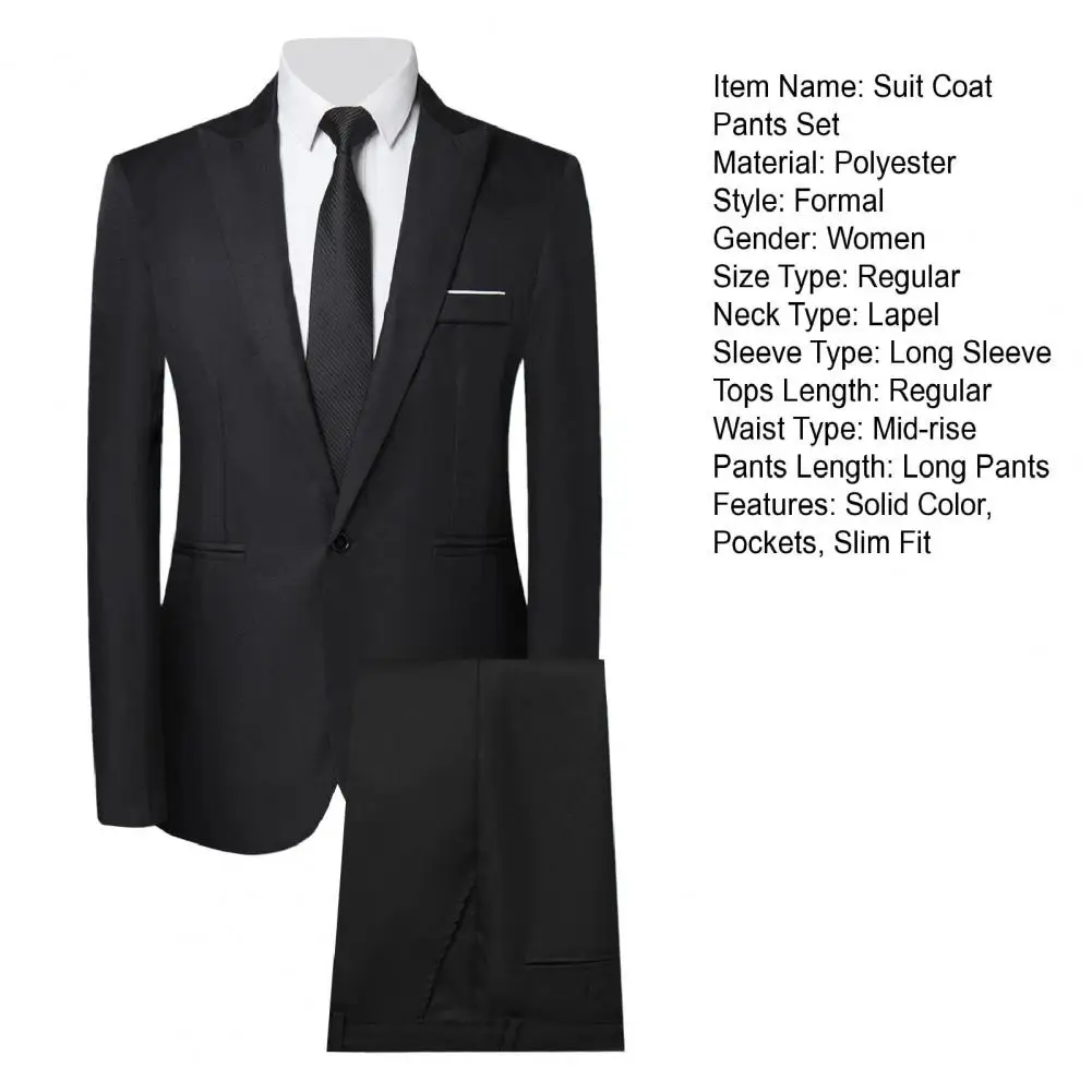 Material: Elevate your formal attire with this sophisticated 2-piece suit coat and pants set crafted from high-quality polyester fabric, ensuring durability and a polished look for any occasion.