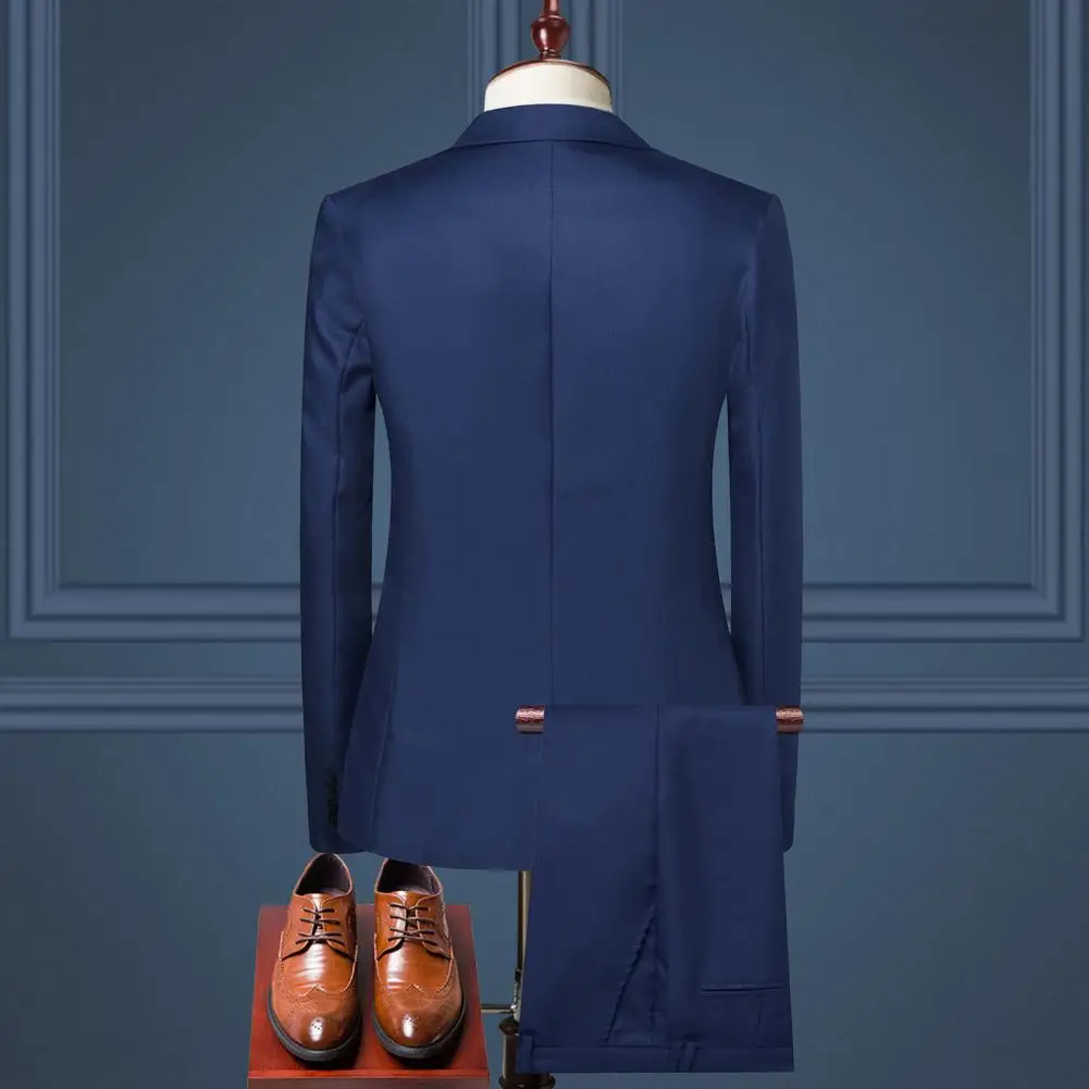 This high-quality suit coat pants set for men is crafted from premium polyester fabric, showcasing exquisite workmanship. The sleek shoulder and trouser lines exude elegance, making it an ideal choice for formal occasions.