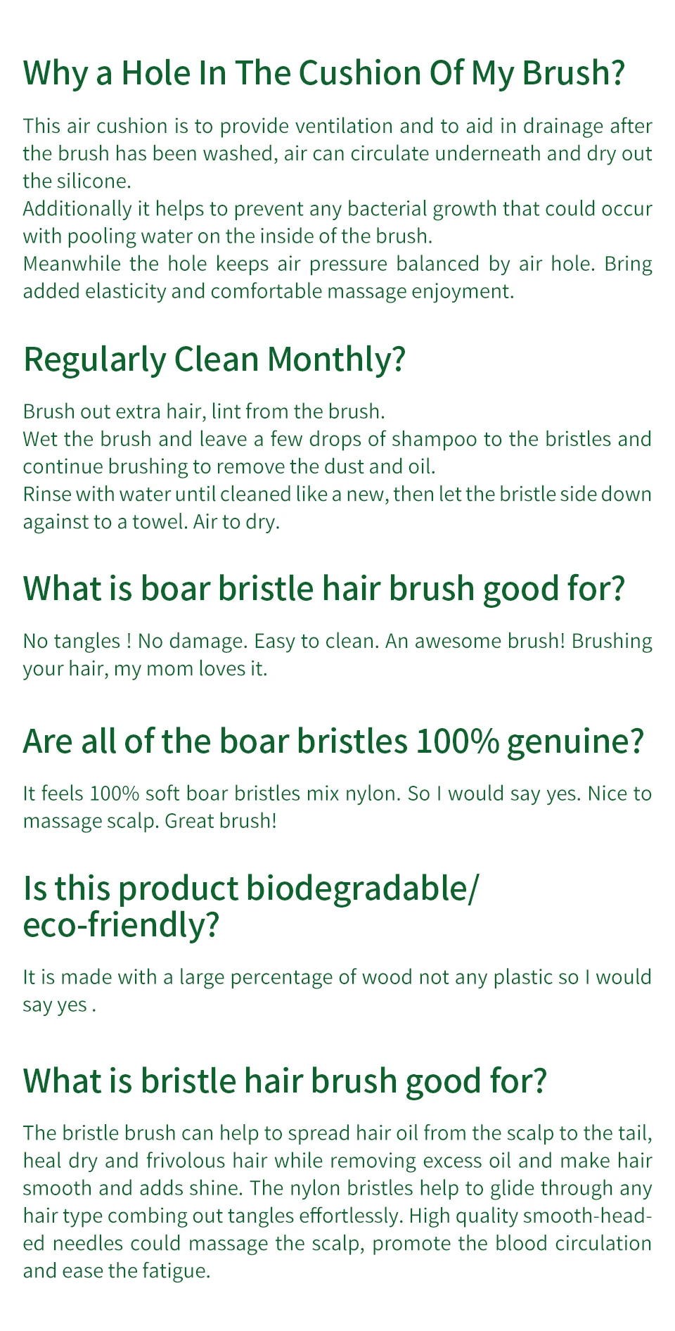 Q5: What is Wool hair brush good for ?