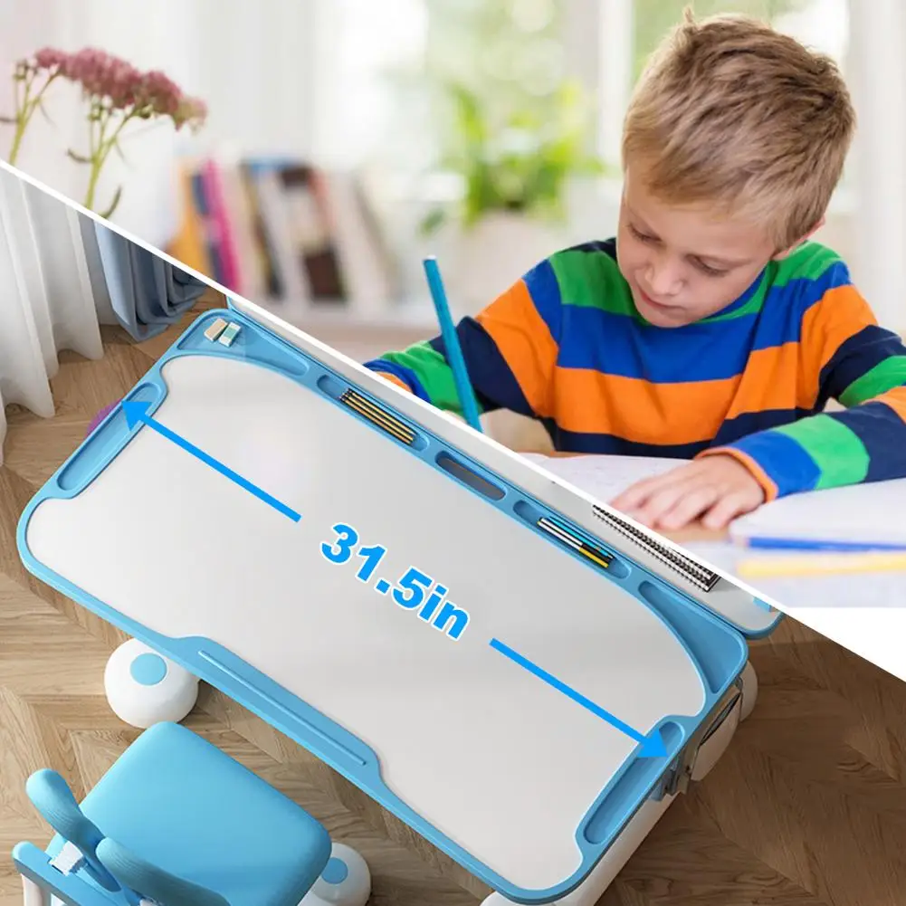 Sitting Corrector & Upgraded Widened Desktop: sitting corrector design can keep your child upright sitting posture, protect children's vision. The upgraded 80cm writing area is widened to make it more spacious and comfortable compared with the normal learning desk chair set in the market.