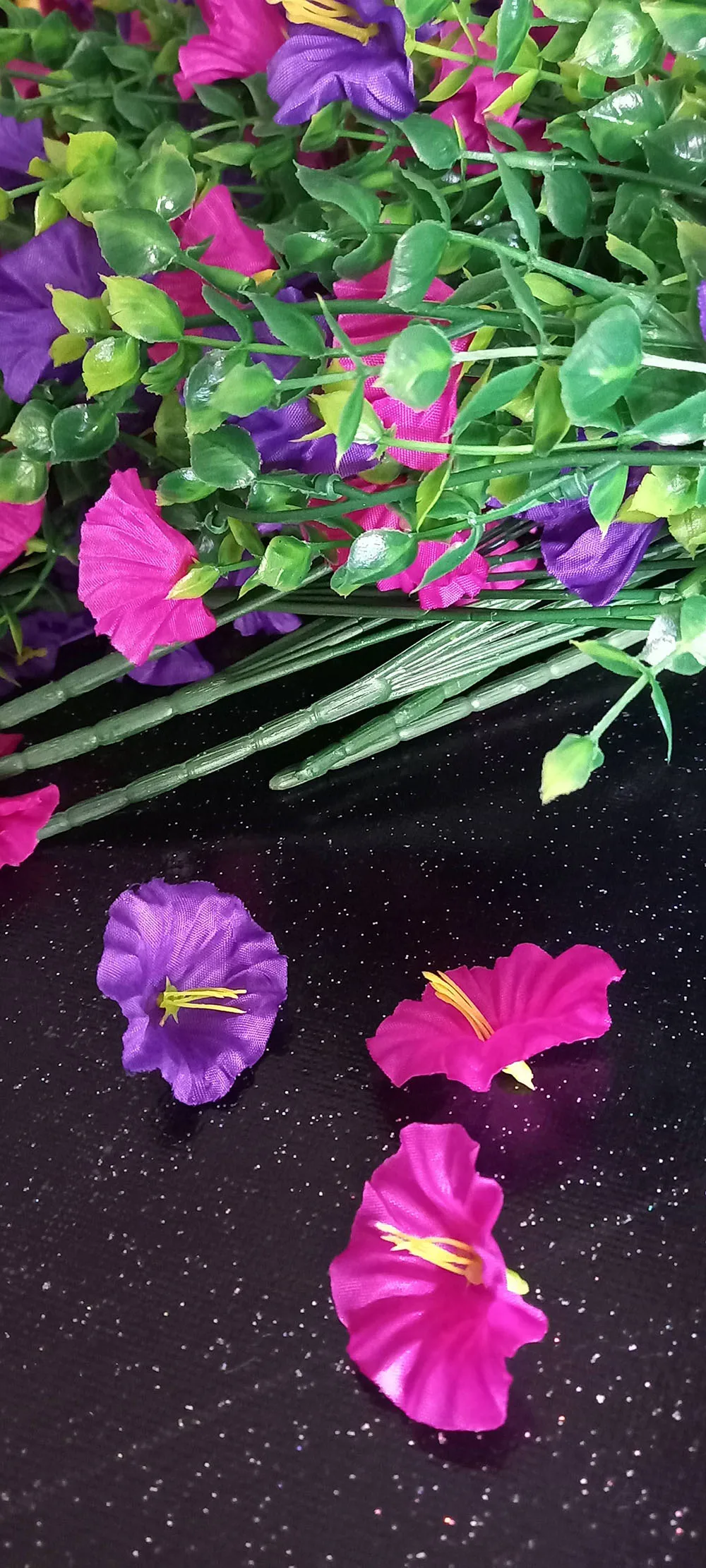 The first stem picture is with one stand the second picture is with two stems you need a lot of stems to make it look like the picture that they’re saying how many you’re getting so two stands is consist of one stem the color is very vibrant but you need a lot of these so when ordering order two extra more to get this the size of the picture