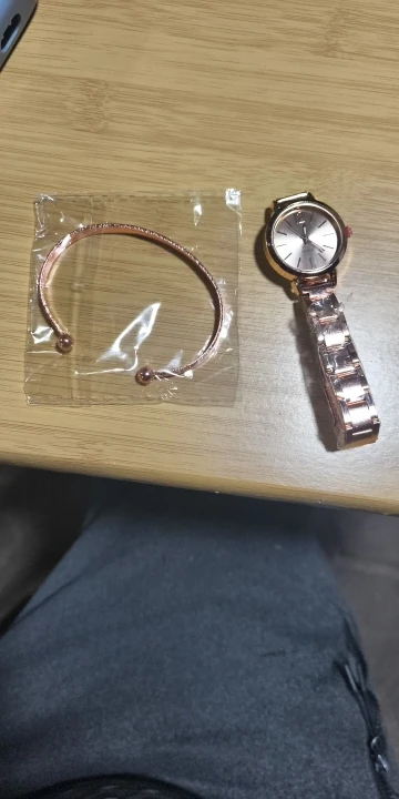Beautiful watch and bracelet, arrived in good condition, lightweight material, not heavy, comes with its corresponding battery and is safe.