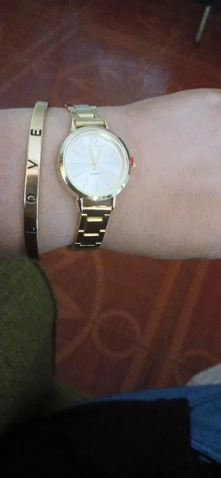 18 reviews for 2PCS Women’s Watch Fashion Gold Steel Band Quartz Wristwatch Opening Cuff Bracelet Set