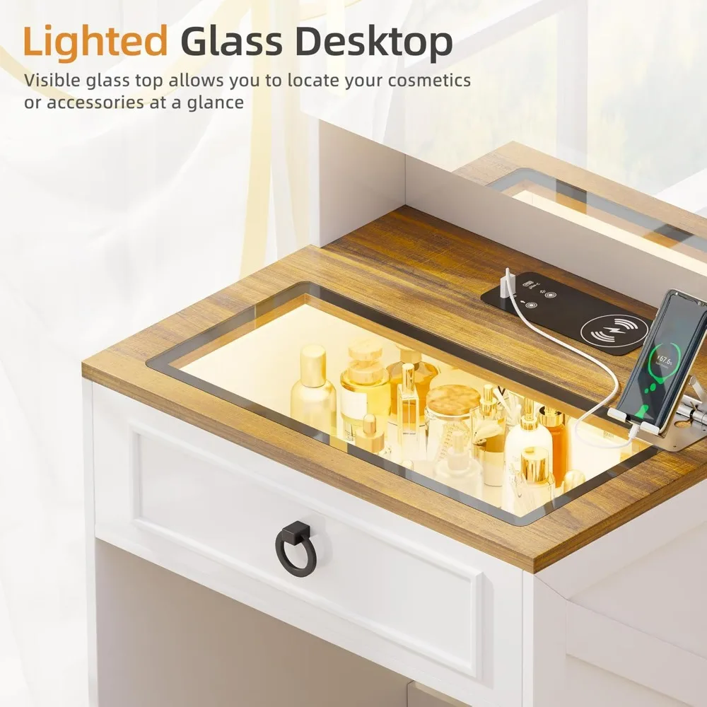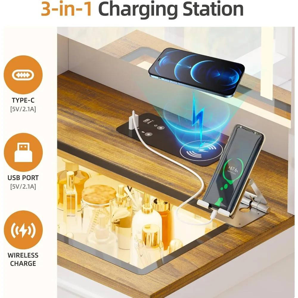 3-in-1 Compact Vanity Desk with Illuminated Mirror and Charging Station, Makeup Vanity Set