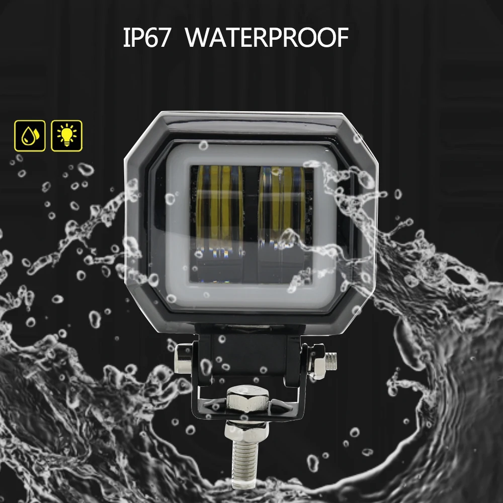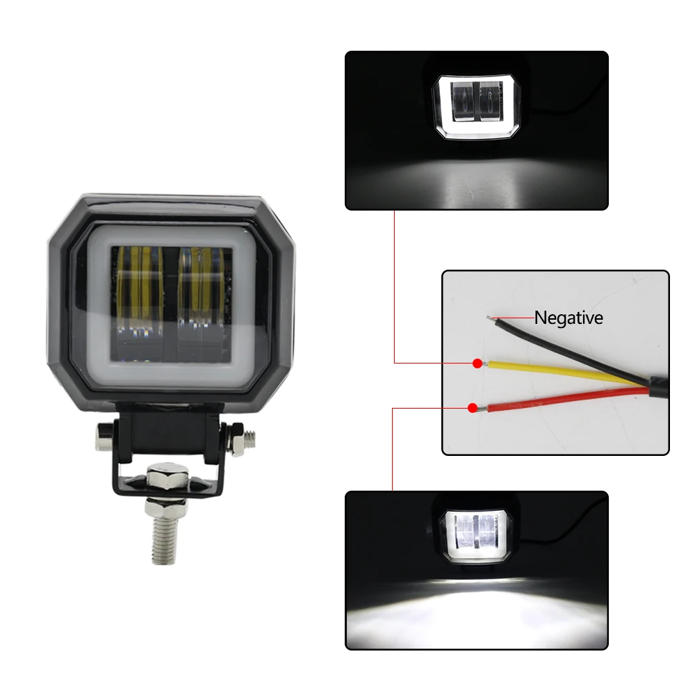 3 Inch 7D Lens LED Work Light Bar Square Car Headlight Halo For Motorcycle Jeeps ATV SUV 12V 24V Angel Eyes Driving Lights