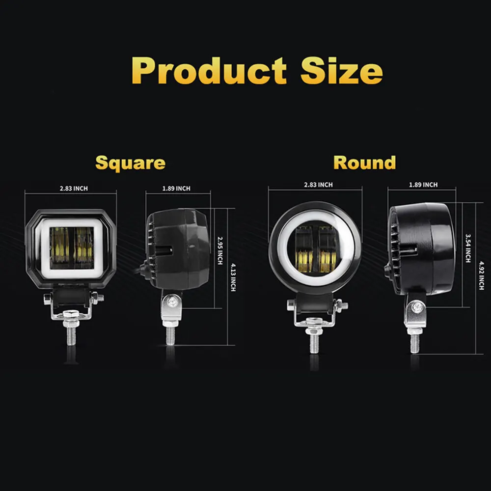 14 reviews for 3 Inch 7D Lens LED Work Light Bar Square Car Headlight Halo For Motorcycle Jeeps ATV SUV 12V 24V Angel Eyes Driving Lights