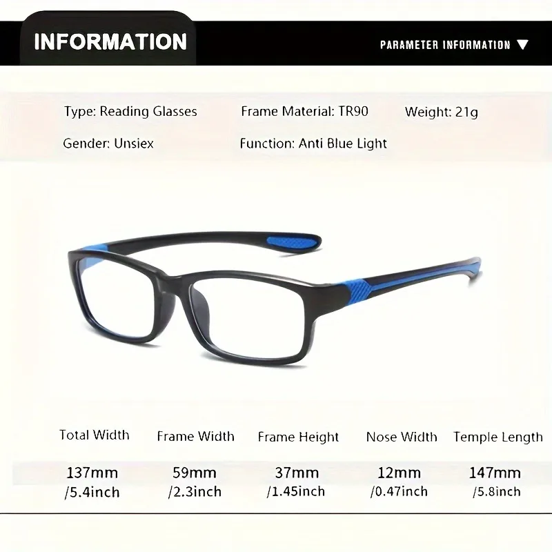 17 reviews for 3 Pairs of Unisex Sports Reading Glasses Rectangular Frame Anti Blue Light Comfortable Reading Glasses for Elderly People