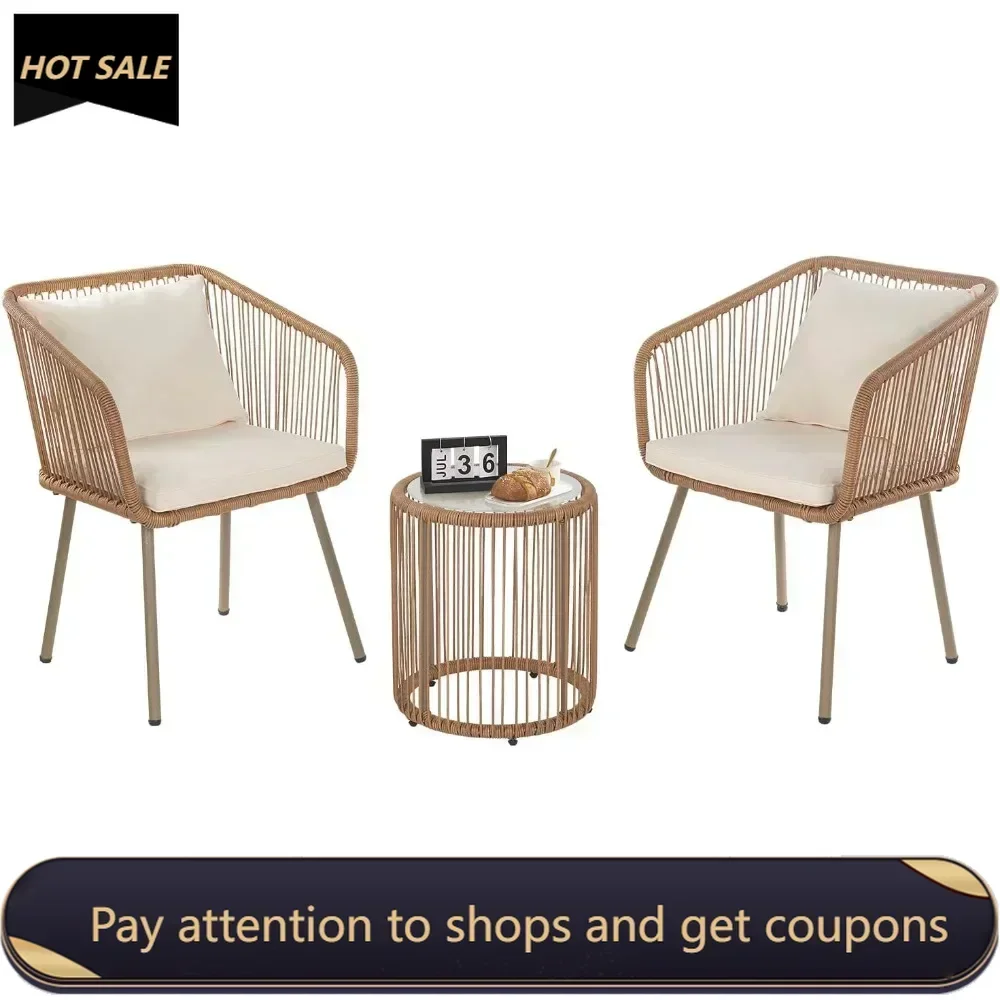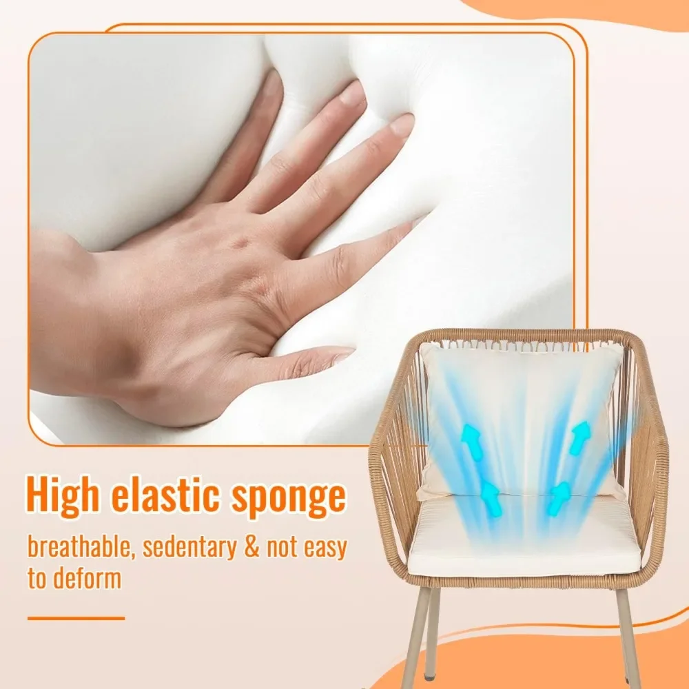 - 【MODERN AND STYLISH】The cushions and pillows of the Patio Furniture Set use a high-density elastic sponge which is breathable, sedentary and not easy to deform, give you a comfortable seating and also easy to remove and wash with zipper design. Our Bistro Furniture Set is convenient storage and save space. Outdoor set features and elegant glass top side table are perfect for a couple glasses of wine or the morning coffee and newspaper. In addition, each leg of the chairs is equipped with protective foot pads for safety to prevent the floor from scratching and increase the stability of your furniture.