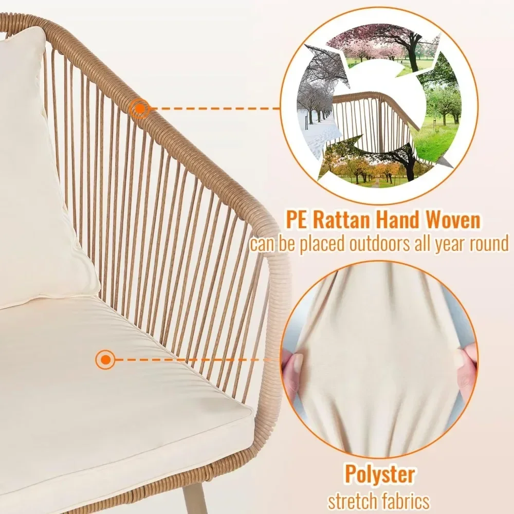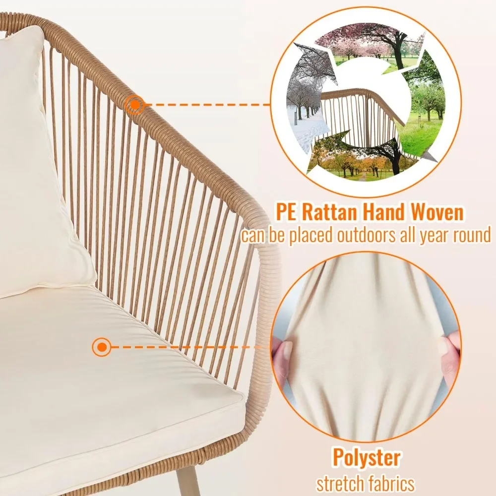 - 【INDOOR AND OUTDOOR】 Our Bistro Furniture Set can be placed all kind of spaces such as: balcony, garden, backyard, poolside, living room, etc. The Patio Furniture Set is perfect for a small corner of patio or indoor, and serves as a relaxing place to enjoy leisure time with friends outdoor. Our Rattan Conversation Set is simple but modern and stylish, it will be also perfect for decorating your home with more gorgeous outlook, PE Rattan hand woven can be placed outdoors all year round.
