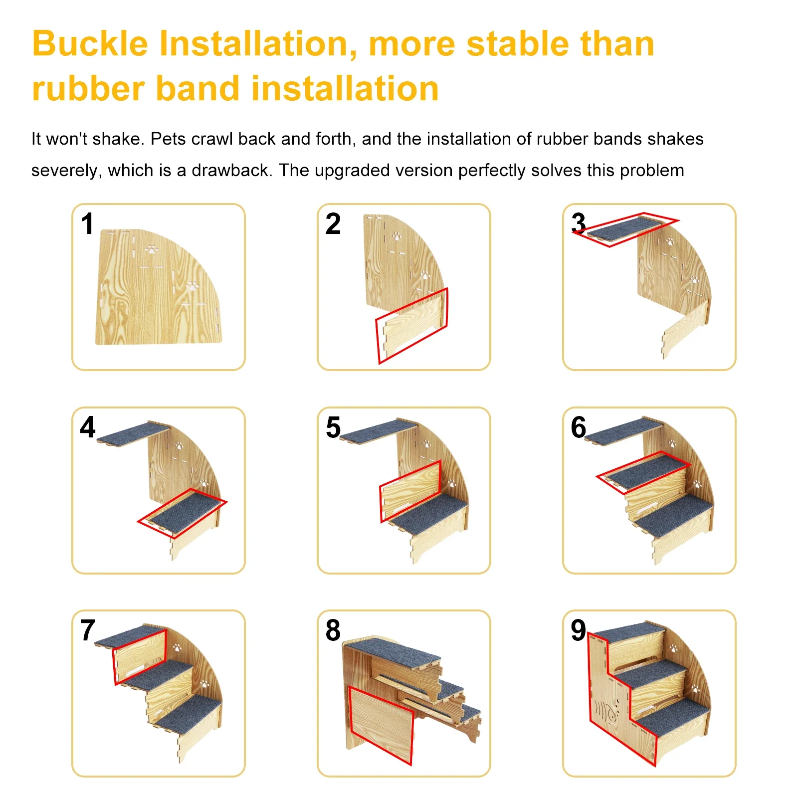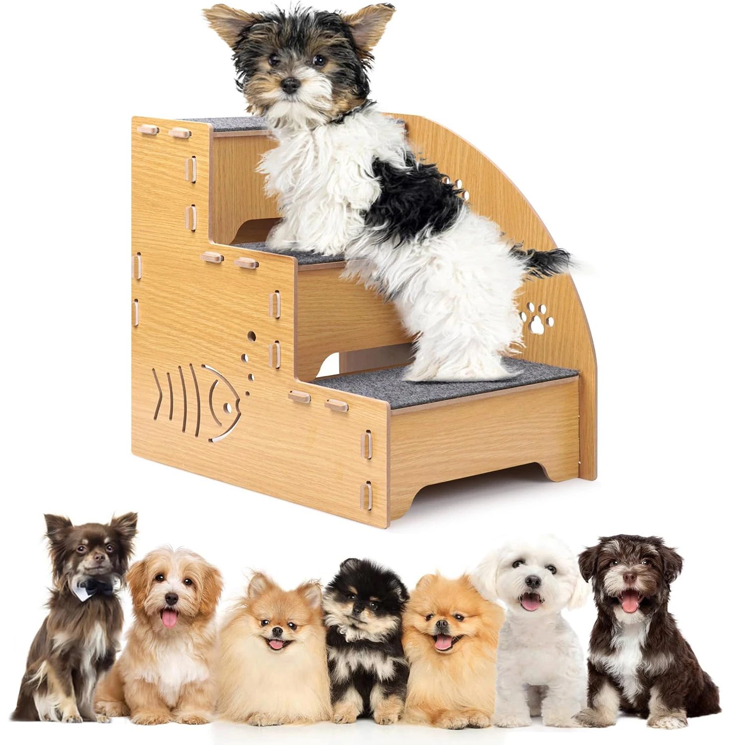 [Sturdy and Nonslip] This dog stairs is made of high-quality wood and is sturdy and nonslip to ensure your pet’s safety. Unlike foam stairs, it ensures your pet has a firm foothold every time it climbs up or down.
