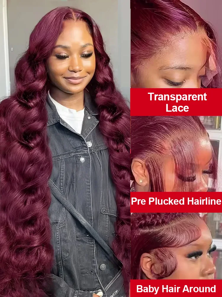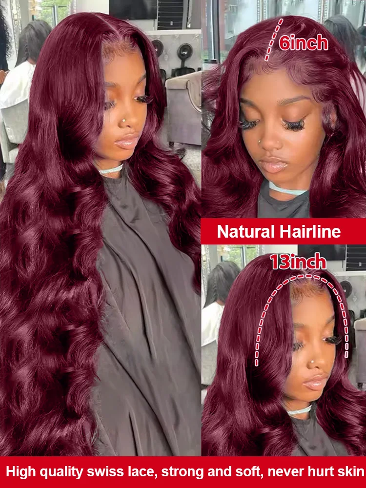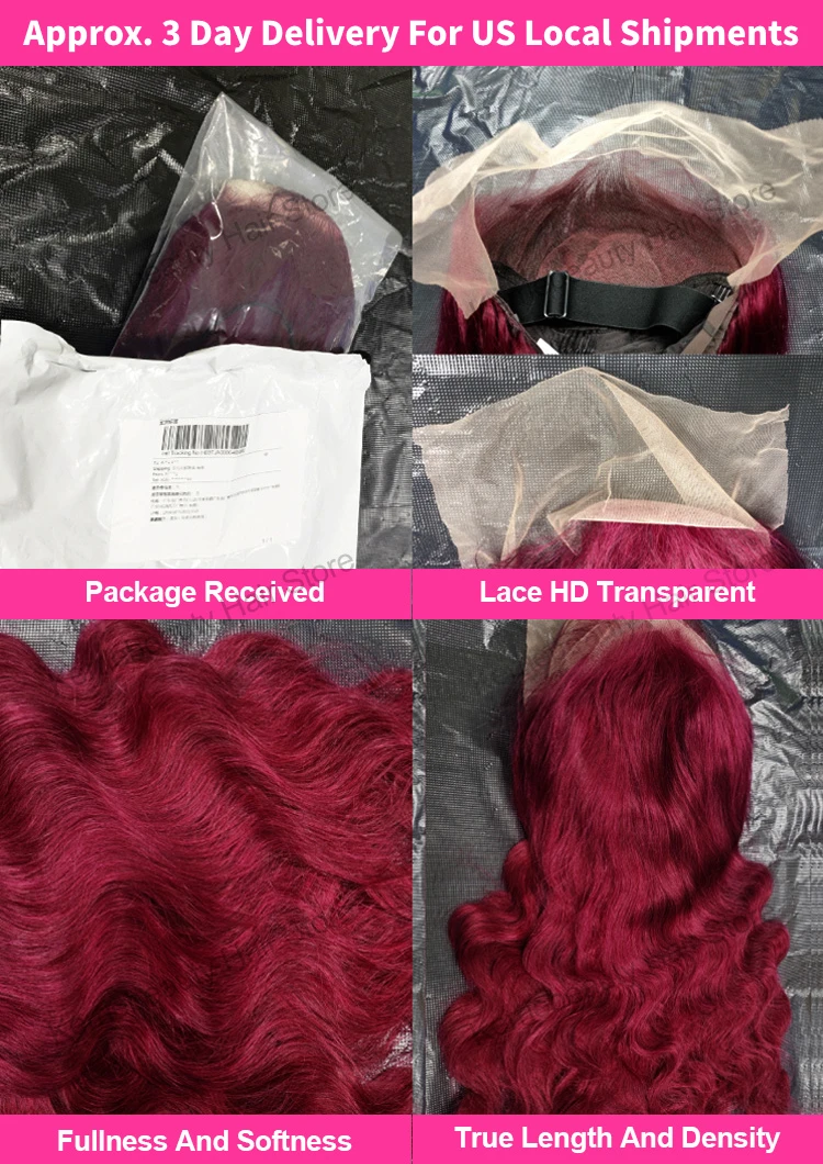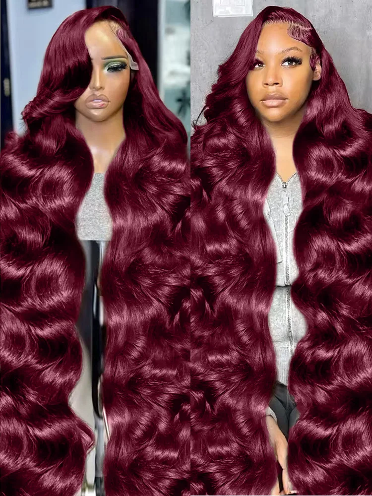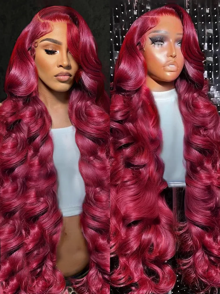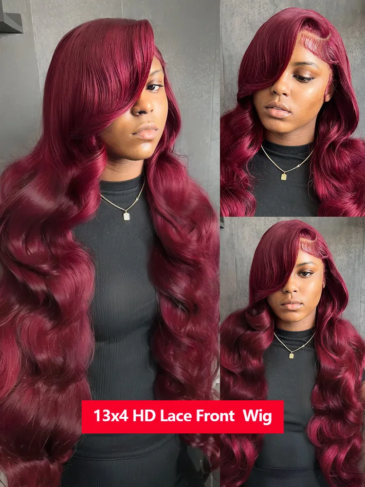Texture: 100% Burgundy Body Wave Human Hair Wigs