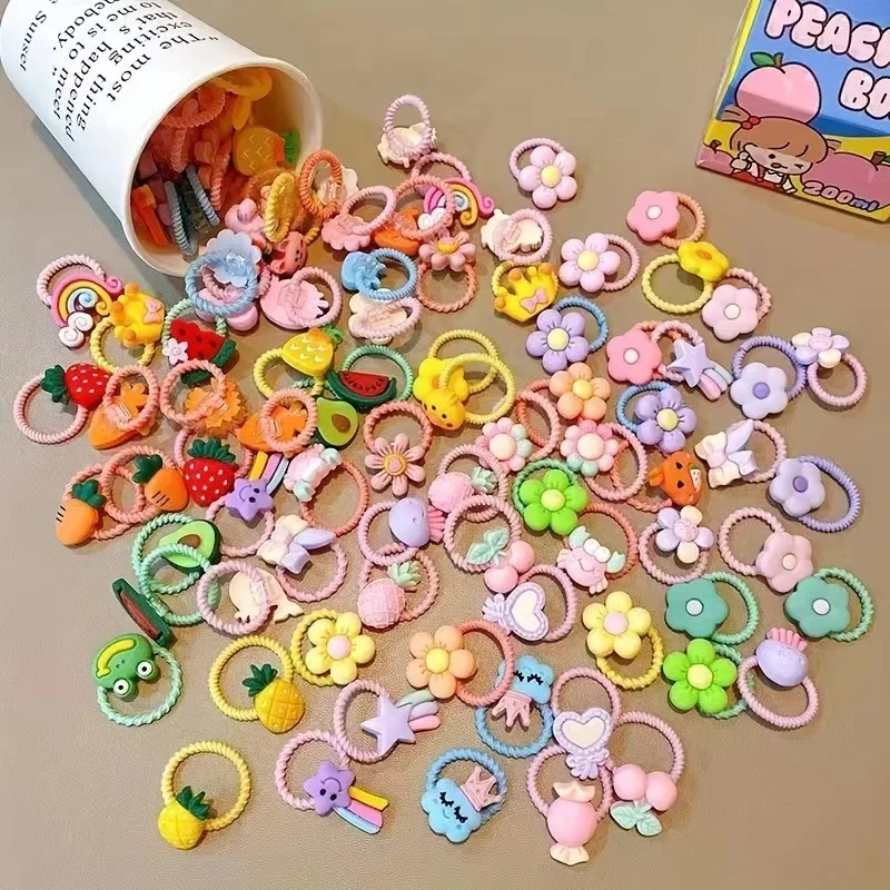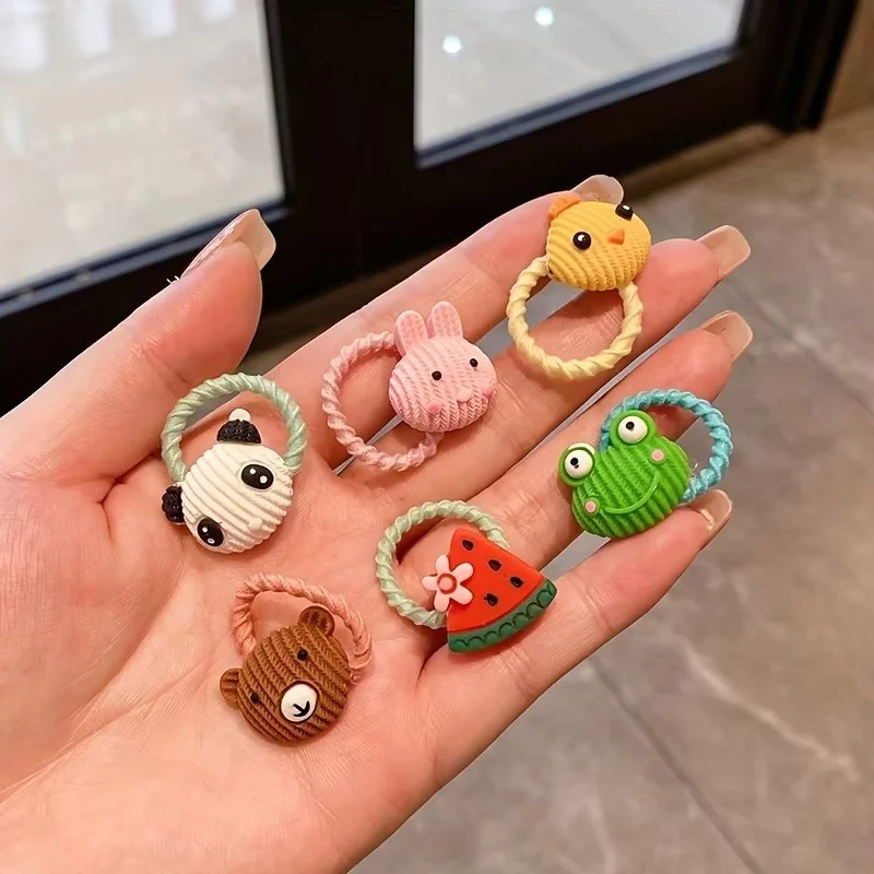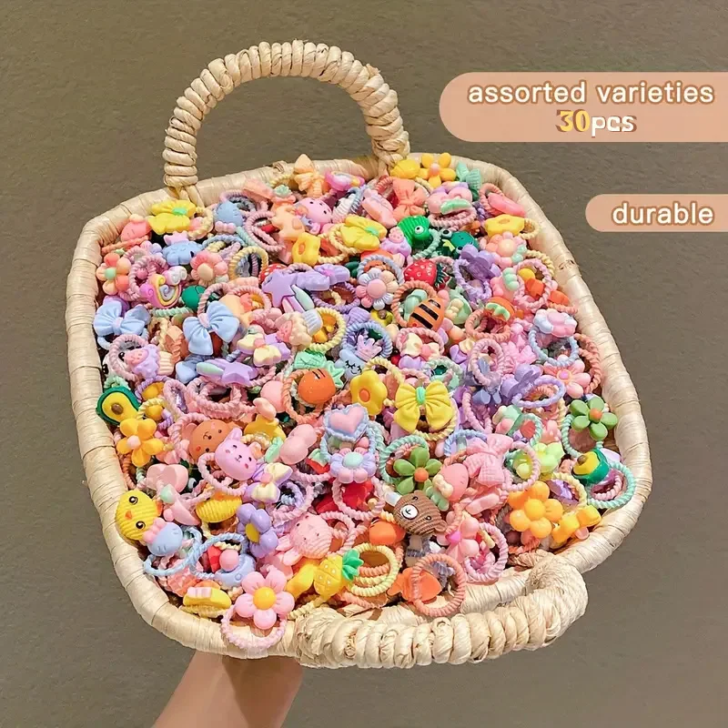 30-Pack Assorted Cartoon Animal & Flower Hair Ties – High Elastic Nylon Hair Bands, Gentle on Hair for Toddlers