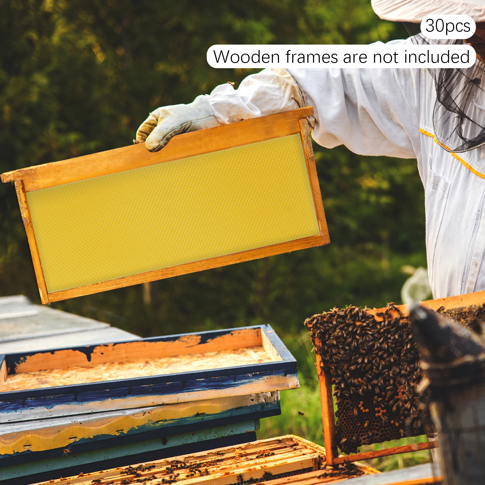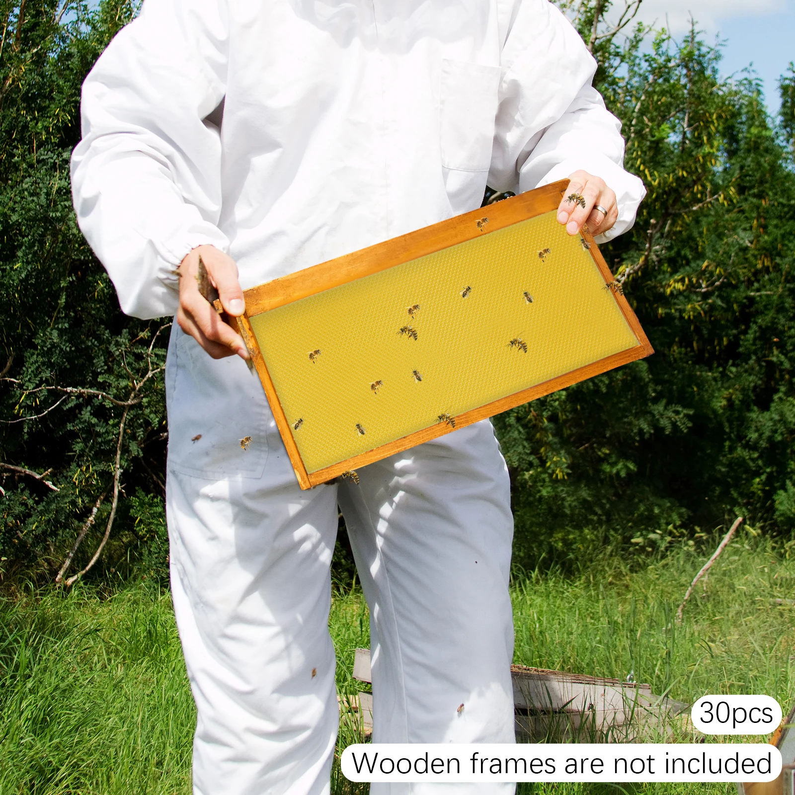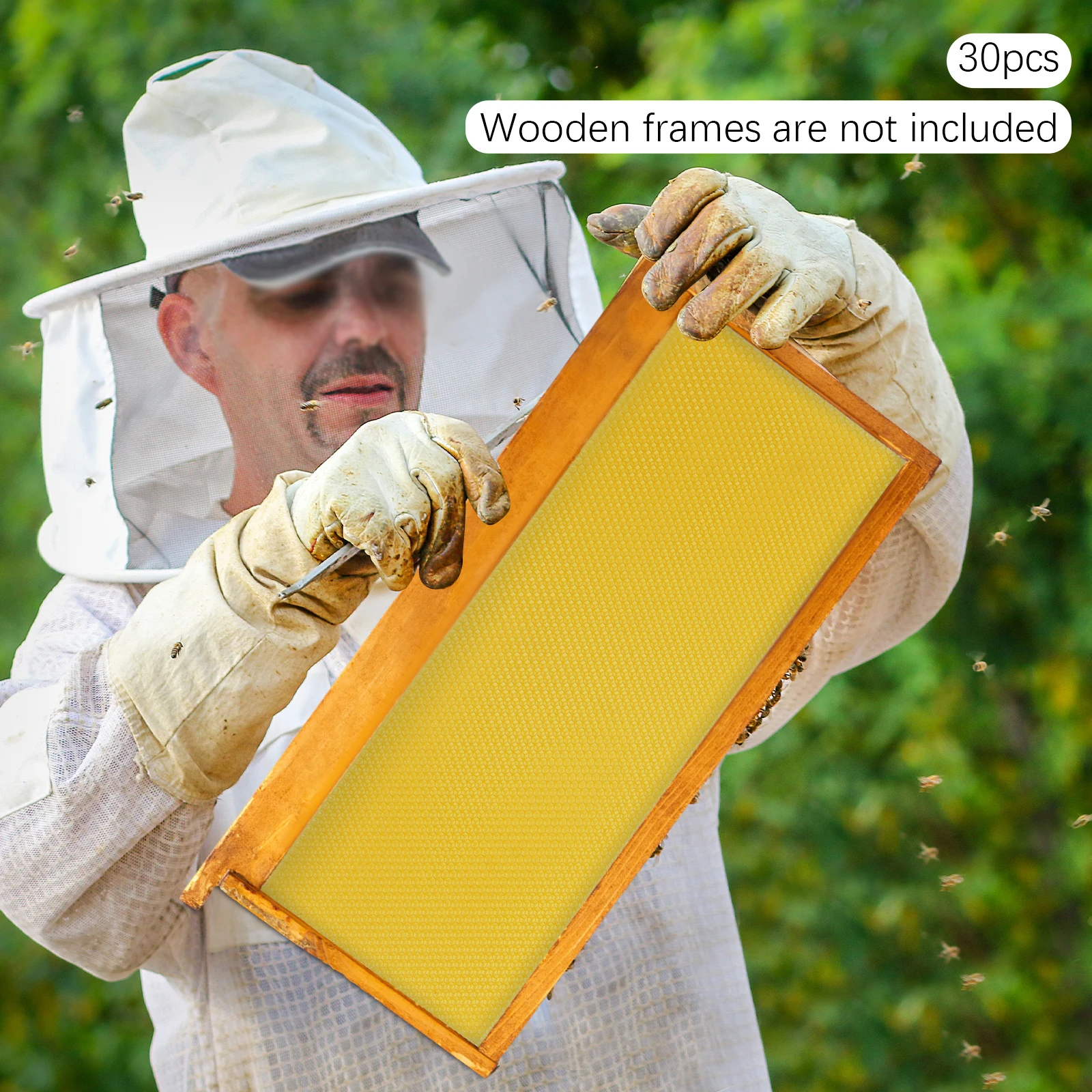 30-Pack Natural Beeswax Hive Foundations Beekeeper’s Starter Kit 7.68×16.34″ Beekeeping Sheets for Increased Honey Production
