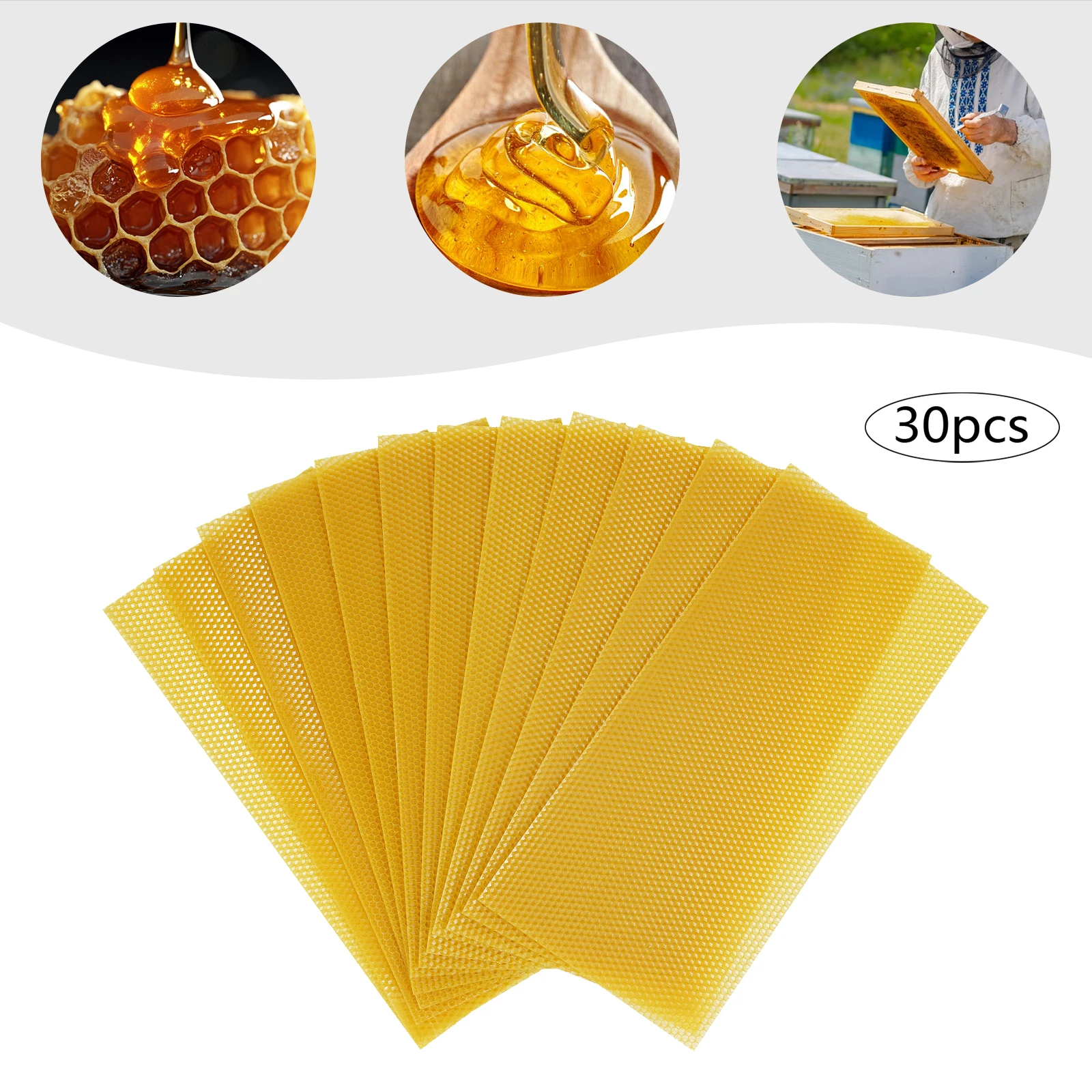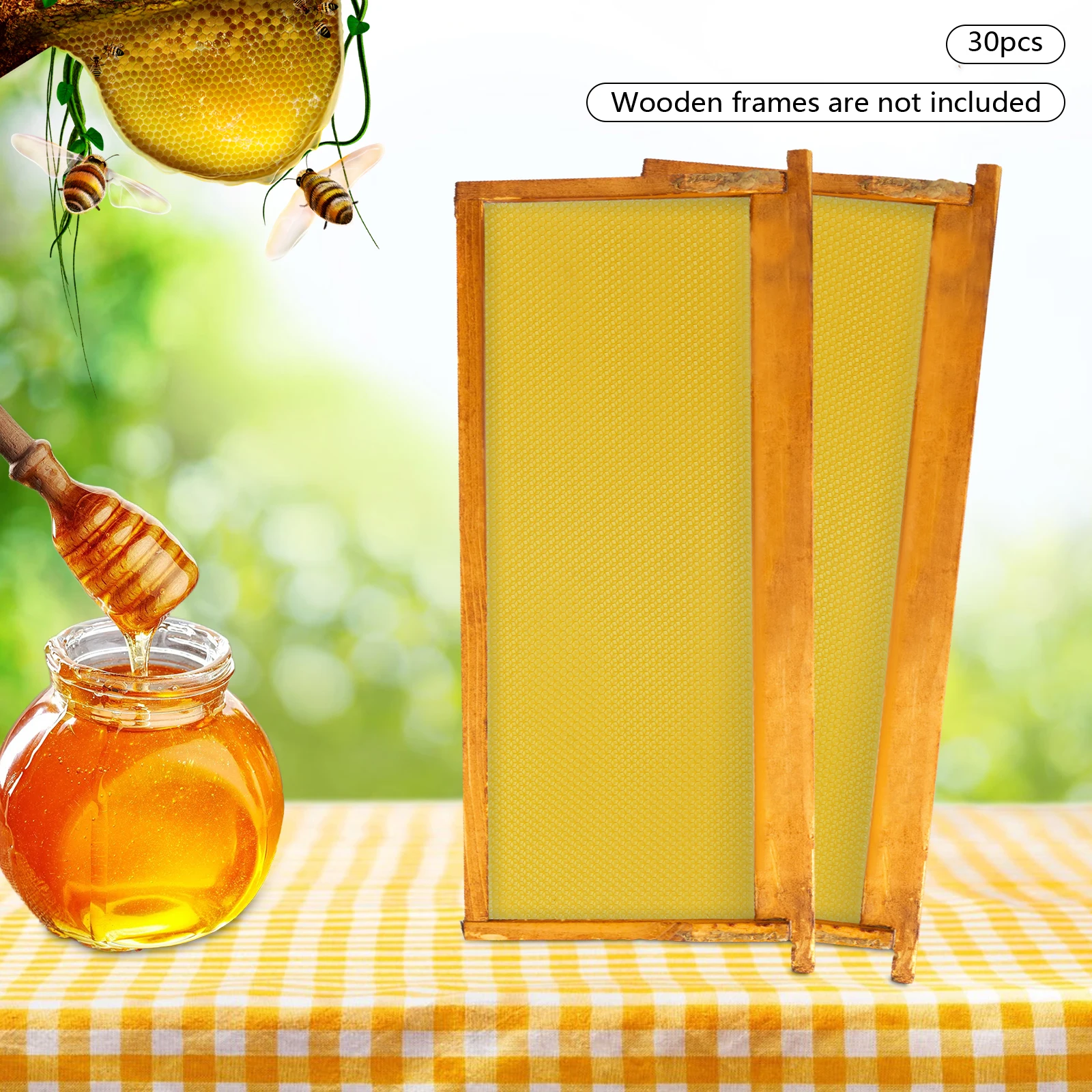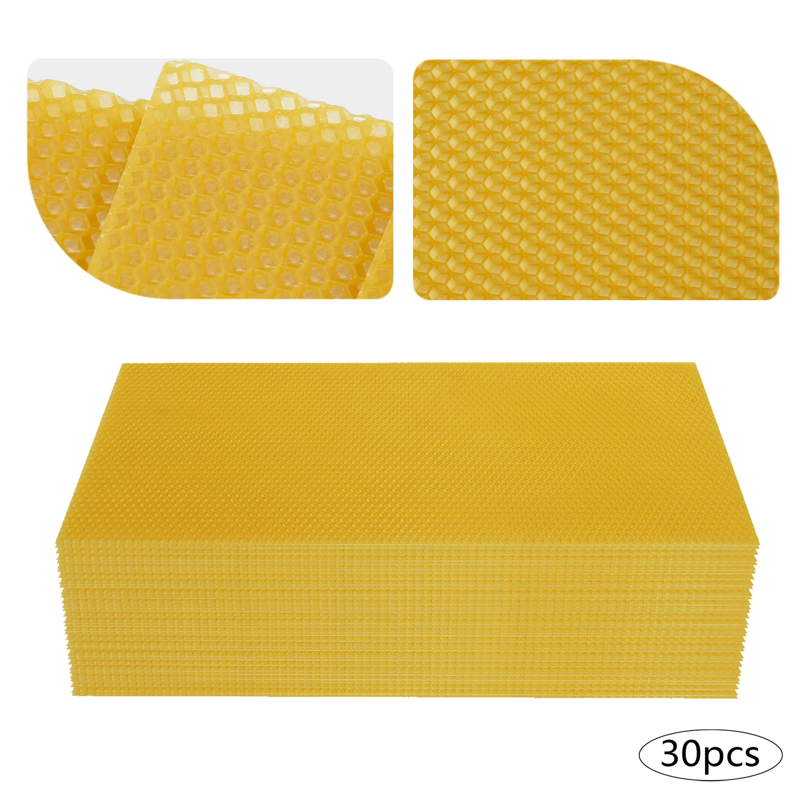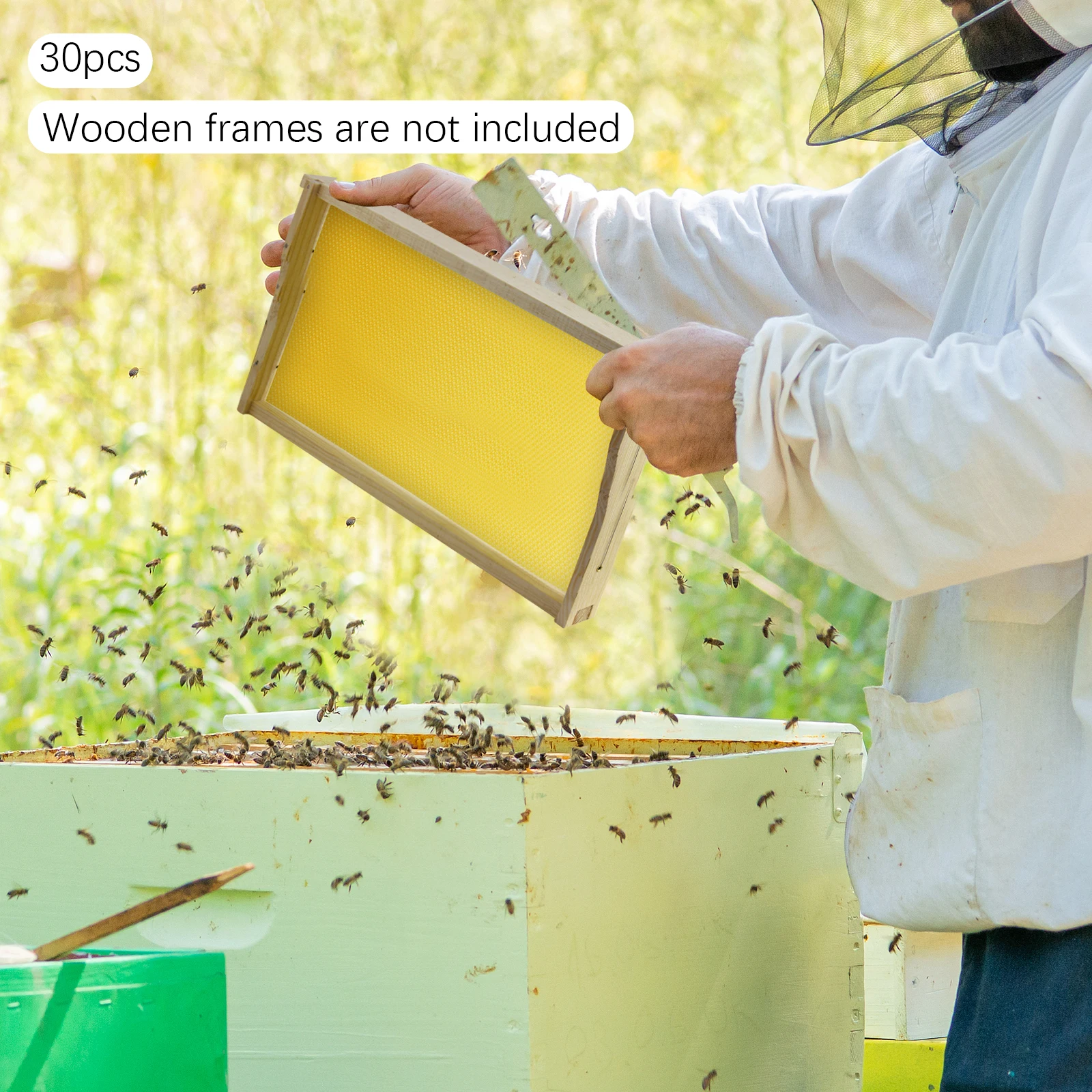 30-Pack Natural Beeswax Hive Foundations Beekeeper’s Starter Kit 7.68×16.34″ Beekeeping Sheets for Increased Honey Production