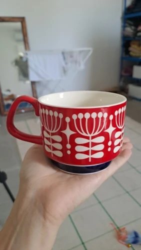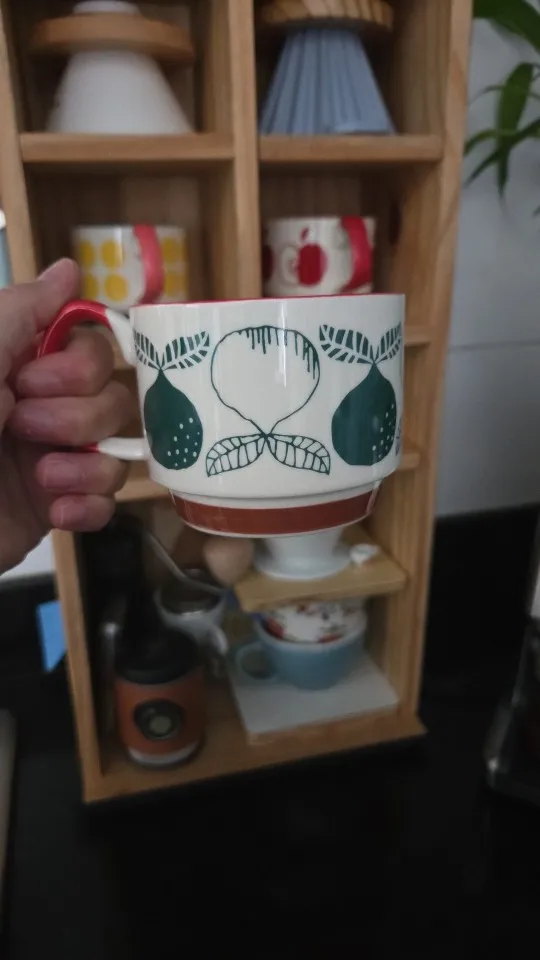 Nice coffee mug, just like on the pictures. I am really satisfied with the product. Also the delivery was fast. I recommend the seller.