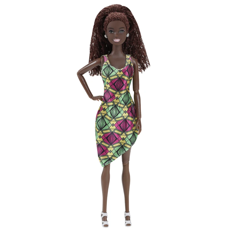 30CM Female Black Dolls With Dress Kids Toys Woman Fashion Shoes Brown Hair For Barbie Black African Doll Children Birthday Gift