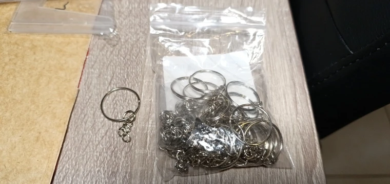 presented in two separate bags: 1 for the fastening rings and 1 for the keychains