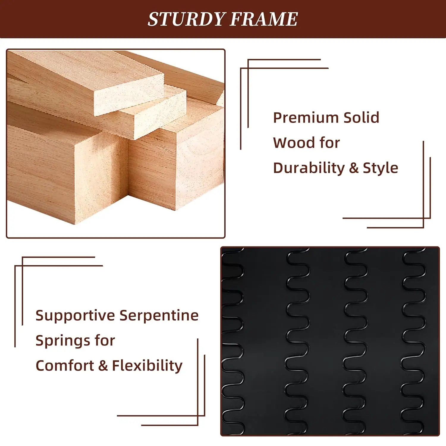Stable Construction: The indoor chaise lounges feature a sturdy wooden frame and serpentine springs, offering a soft yet supportive sit that can bear up to 660 lbs. The frame and legs are made of wood, providing a longer service life than full compression sponge lounge chairs