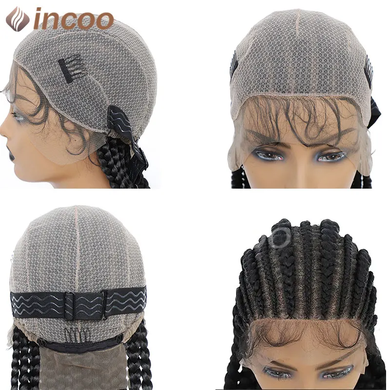 36” Synthetic Jumbo Braided Wigs Twist Lace Front Wig Full Lace Frontal Cornrow Braided Wigs Afro Black Women Dutch Braided Wig