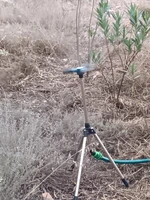 Excellent sprinkler. Fast delivery. Tested immediately and works perfectly. Two streams go in a circle. More than 8 meters in diameter. A big plus is that the tripod is relatively high and can water bushes. I will buy more. I recommend the product and the seller.