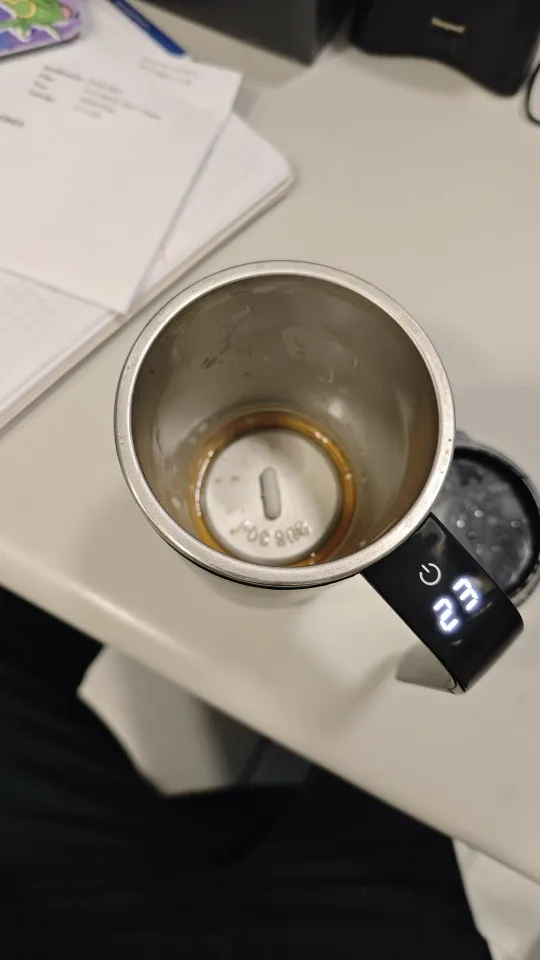 I wish it had function to warm up liquid. It shows celcius temperature of content in cup and can stir has lots of battery life. Comes with usb a to usb c charging cable only.
