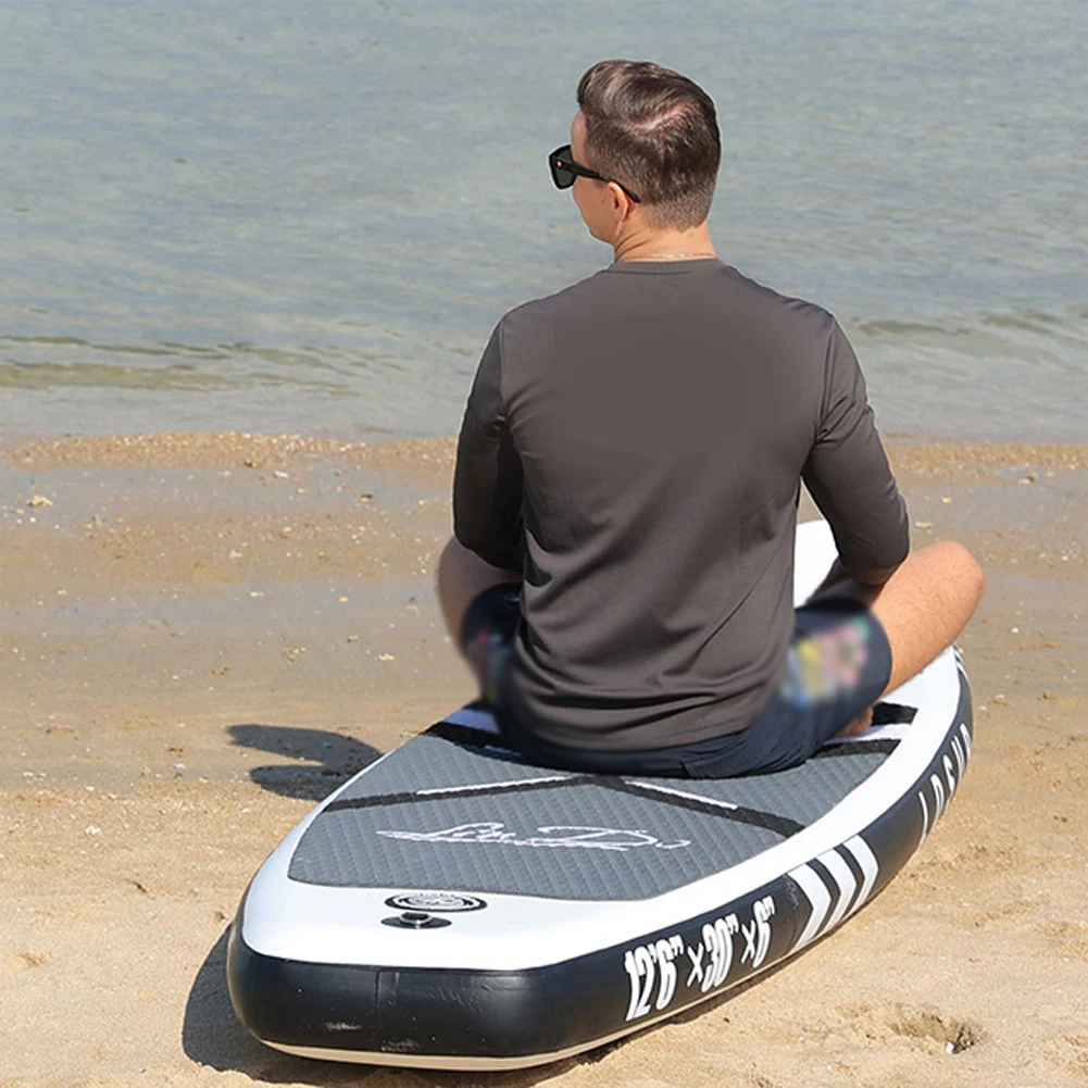 The Inflatable stand-up paddle board is designed for all skill levels surfing stable on the water, suitable for improve stability and balance while standing.