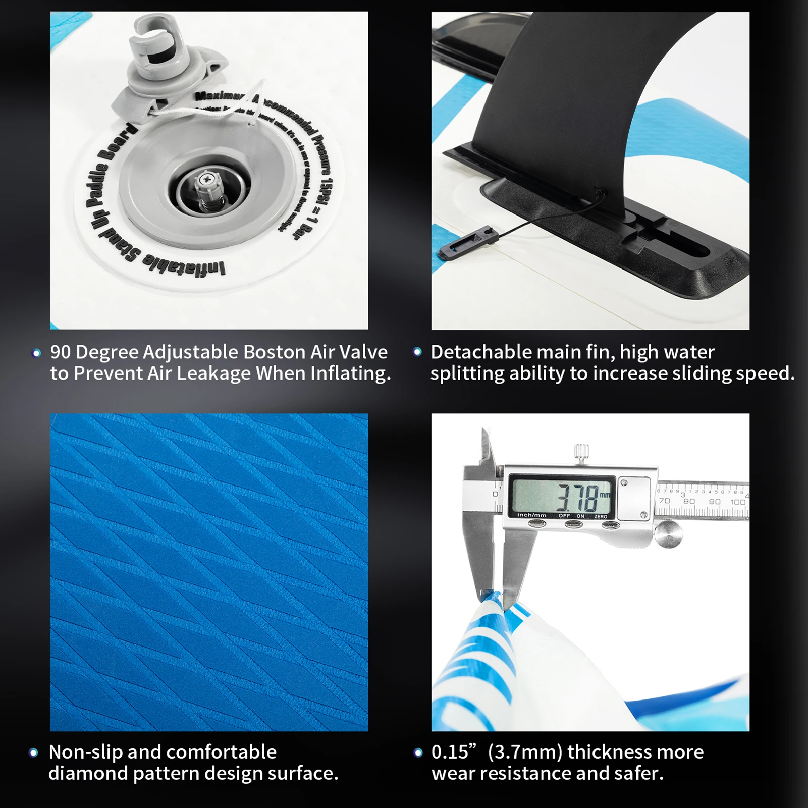 Quality airvalve on the tail of plate, high inflation and deflation efficient and with nice air tightness in harsh environments.