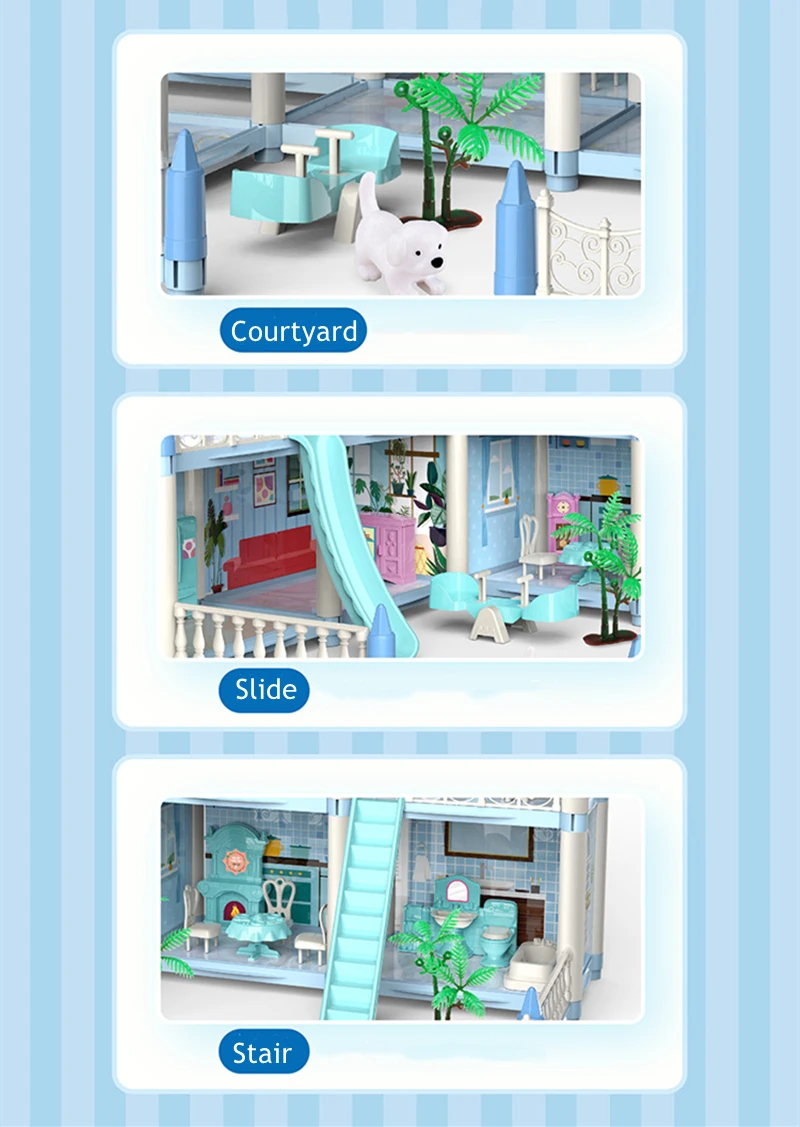 3D Assembly Doll House DIY Mini Model Girl Birthday Gift Toy House Children’s Crossing House Villa Princess Castle Led Light