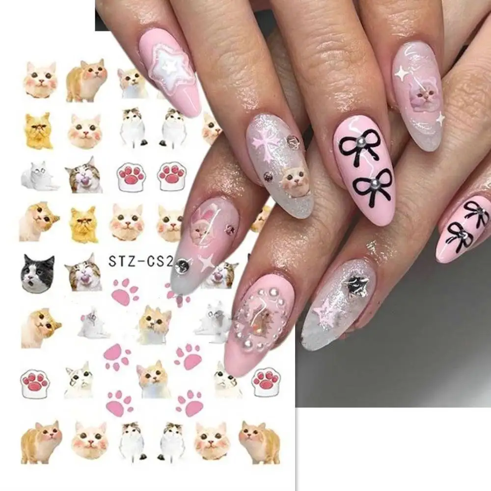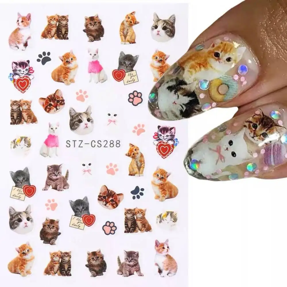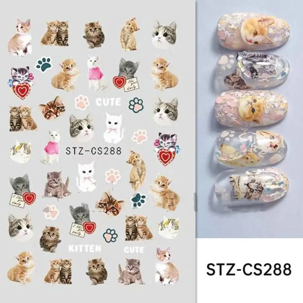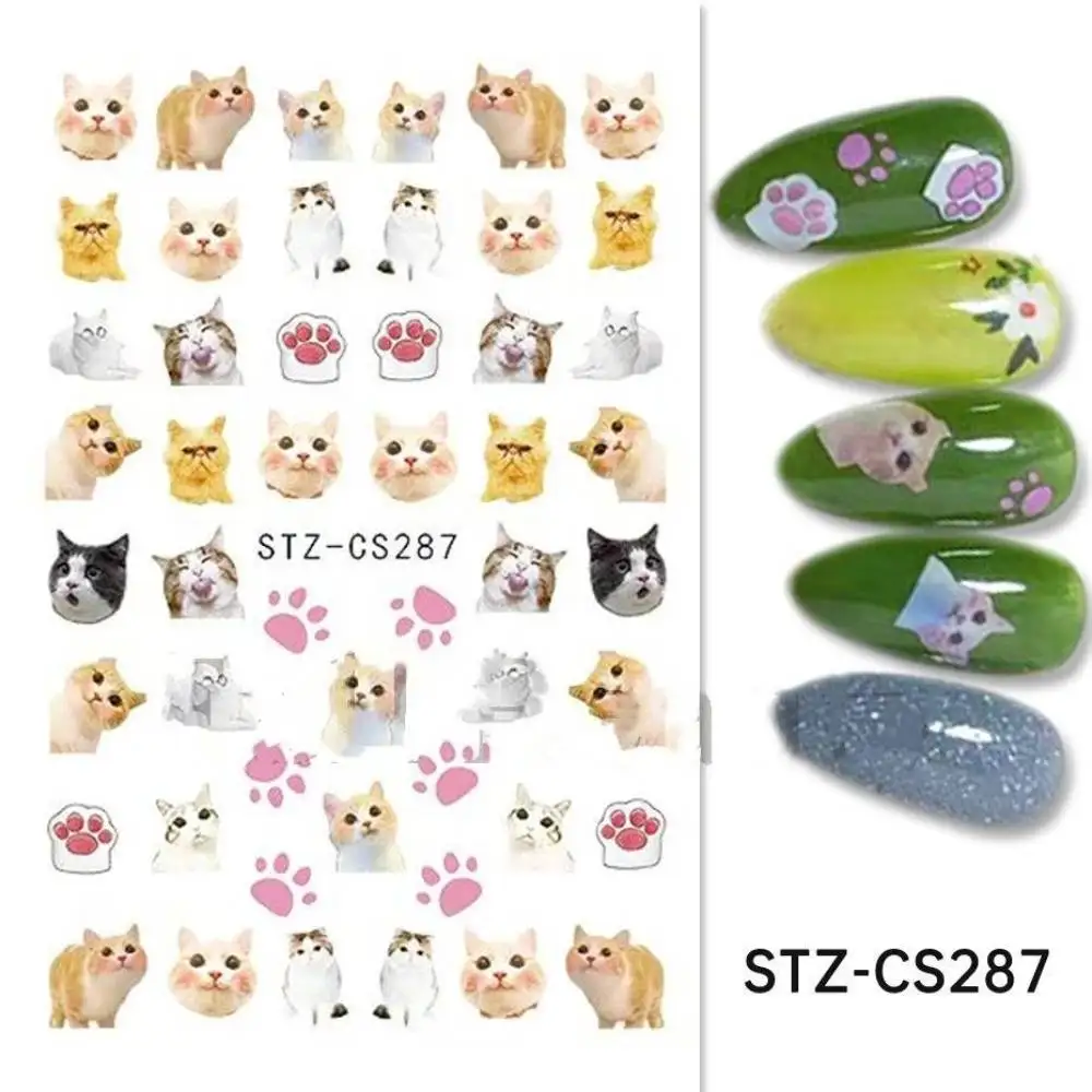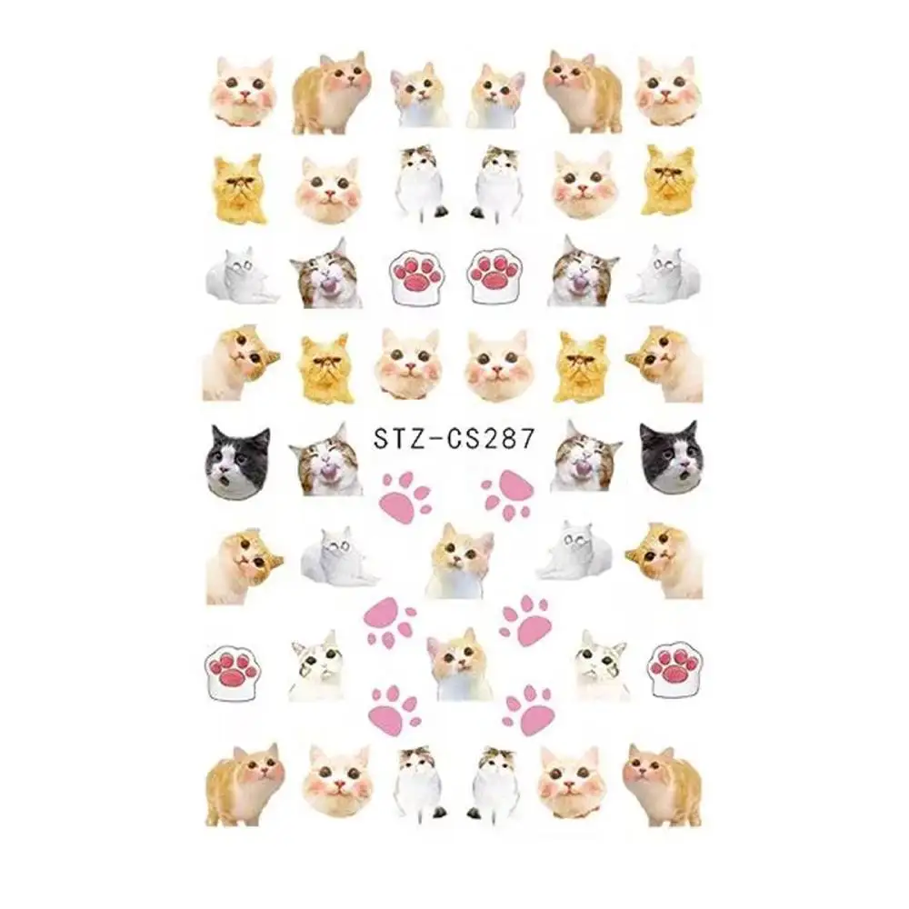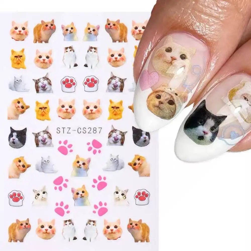Lovely Dog Cat Animal Bunny 3D Korean Cartoon Scrawl Relief Self Adhesive Nail Art Stickers Cute Pretty Puppy Kitty Star Manicur