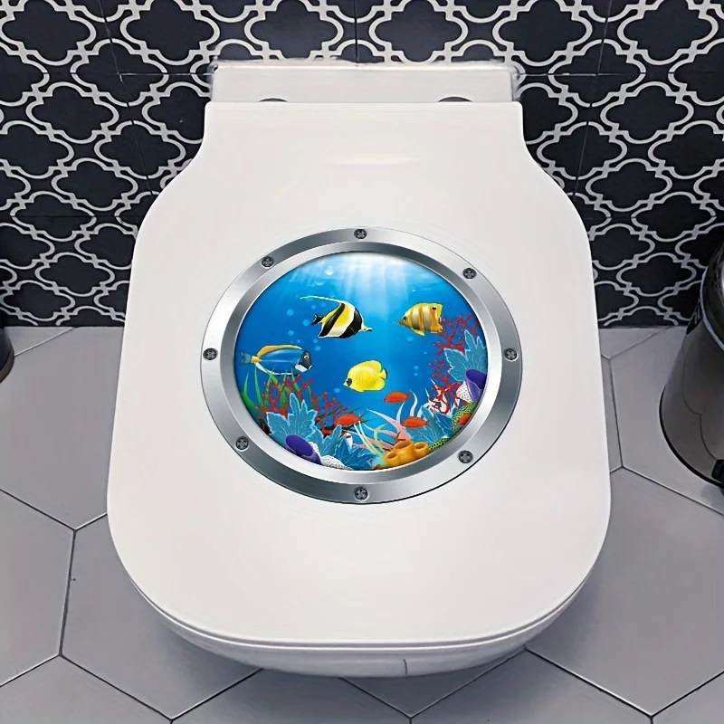 3D Sea World Toilet Stickers Bathroom Toilet Lid Decorative Wall Stickers Home Decoration Waterproof Vinyl Bathroom Accessories
