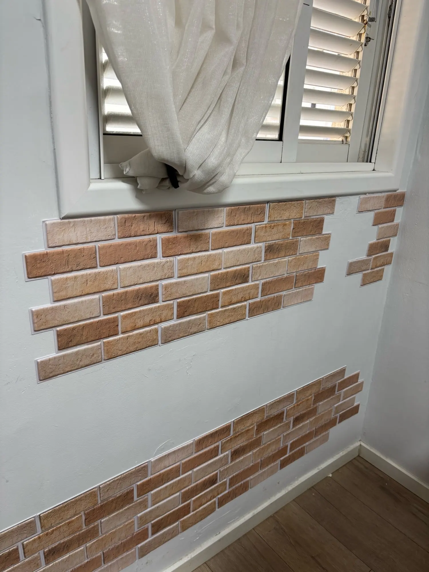 I am satisfied because the sticker adheres well and looks like real bricks.