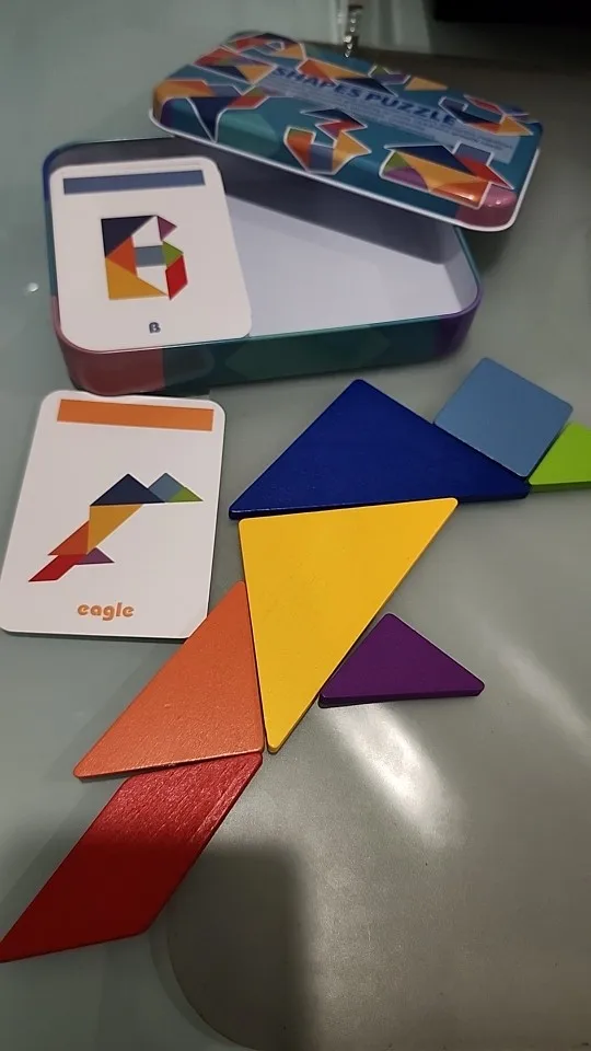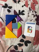 The item is identical to the images, it is of good quality, you can assemble many different shapes, on the back of the cards there are more figures to assemble, the box is made of metal so it is resistant to impacts, the figures are made of wood, I recommend it 🥰✨