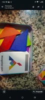 I got, just as i ordered, two identical tangram cardboard boxes with a few shapes inside and a lot of task cards. The pieces are just as described, not big, but comfortable enough to handle. Very portable, so can make a great toy to take on the road with you.