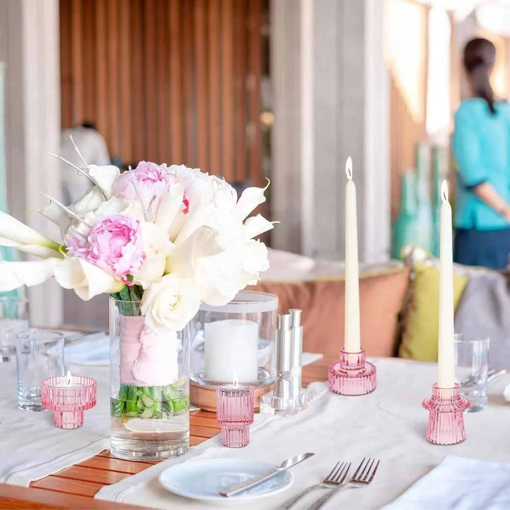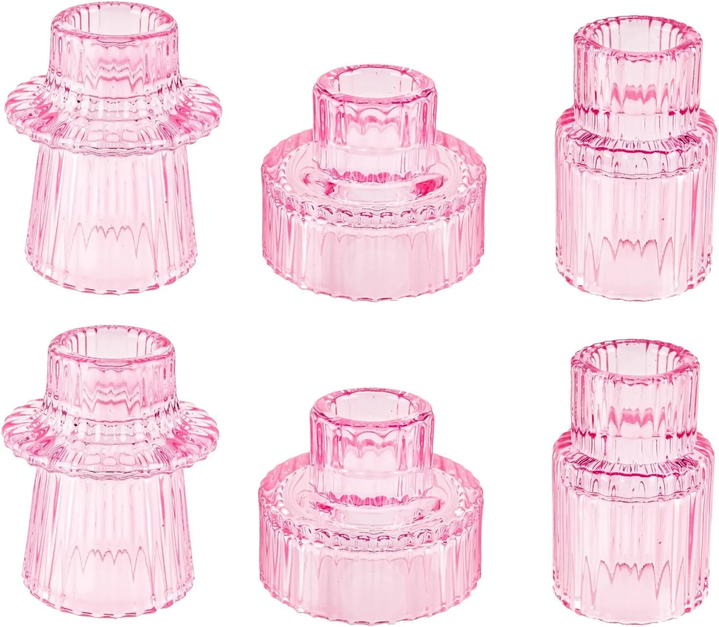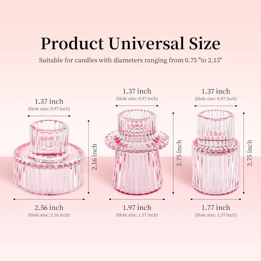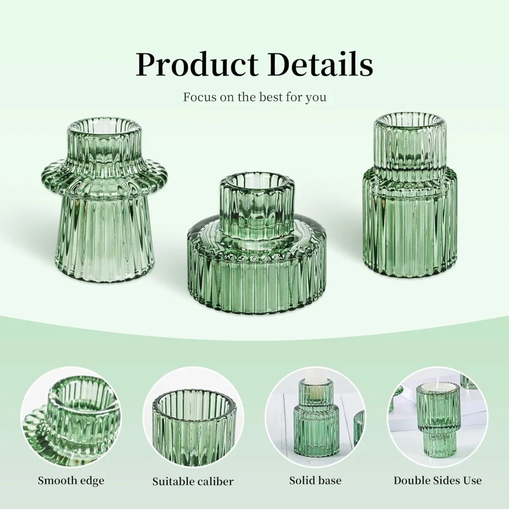 14 reviews for 3Pcs Double Sided Vintage Ribbed Taper Glass Candle Holders for Table Centerpieces, Wedding Decorations Dinner Parties