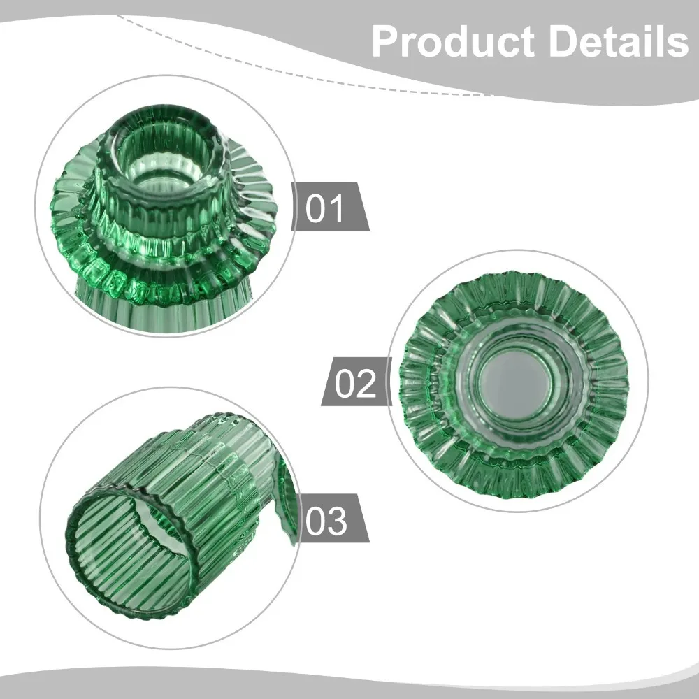 -Decorative Candle Holders with Vertical Striped Design: The vertical striped glass candle holders serve as exquisite decorations for festive dinner tables. Their substantial weight ensures stability when placing candles inside.