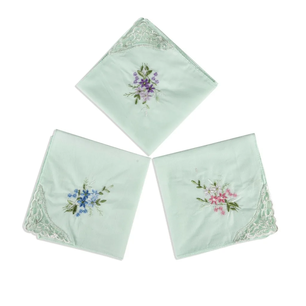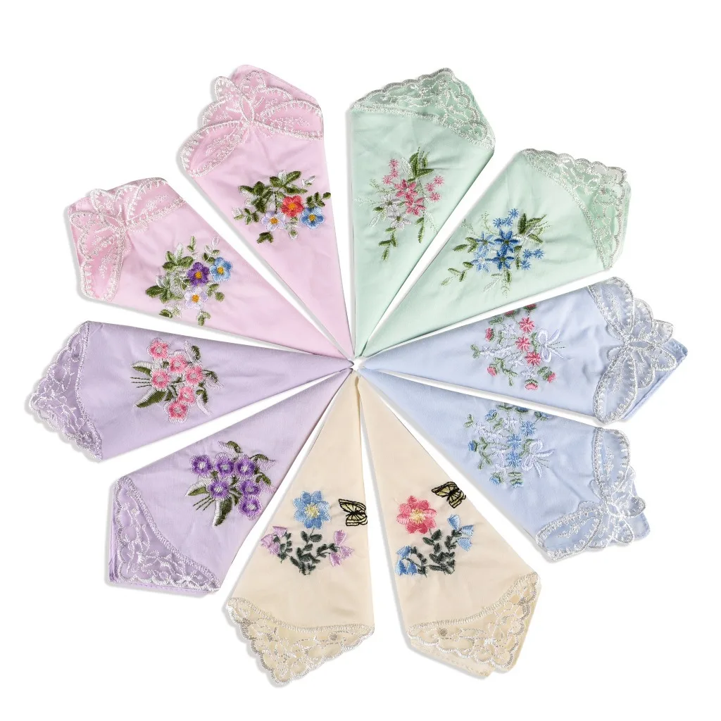 Luxury Cotton Women Hankies Embroidered Lace Flower Hanky Floral Random Color Cloth Ladies Handkerchief Fabrics