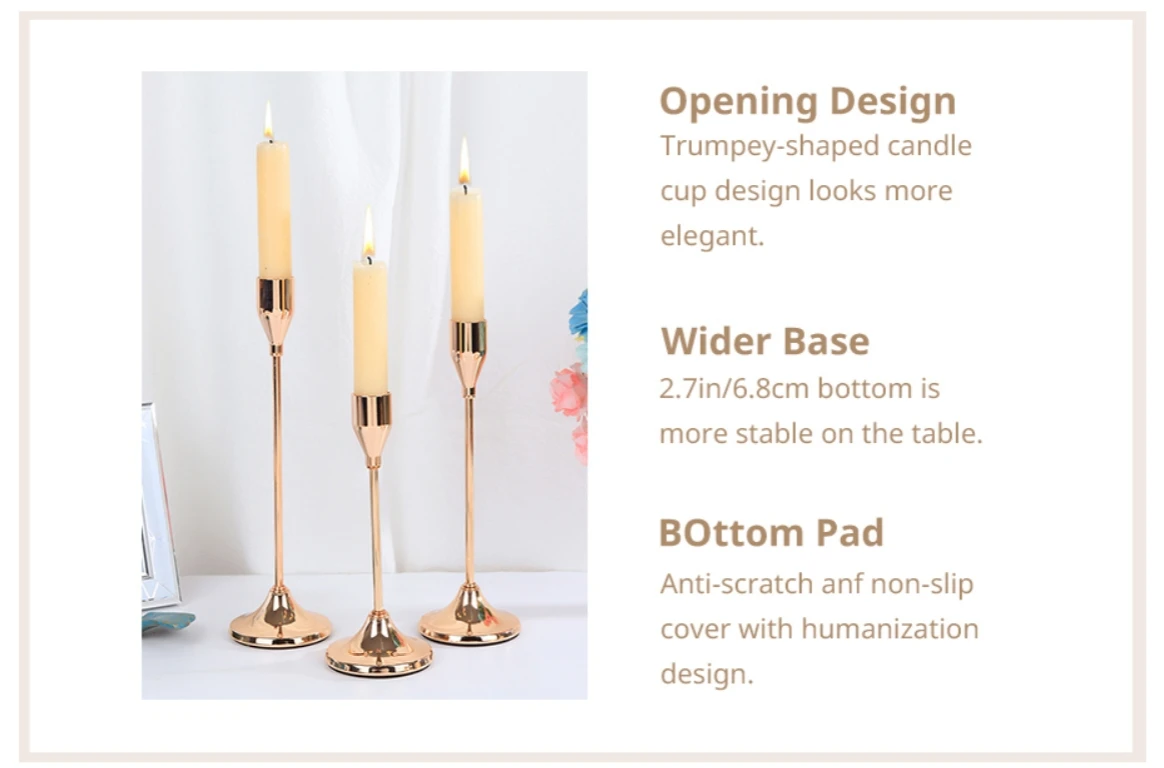 • Matching Stick Candles :The candle holders are designed to match stick candles, creating a cohesive and stylish look.