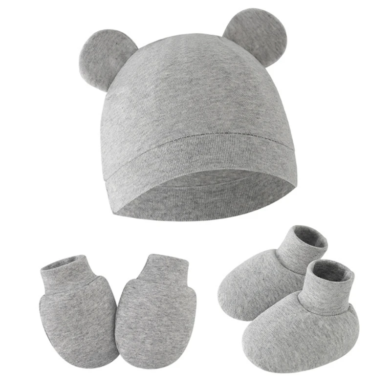 Designed specifically for newborns, these baby hat, glove and foot cover, three pieces set offer comprehensive care and protections for their head, hands, and feet.