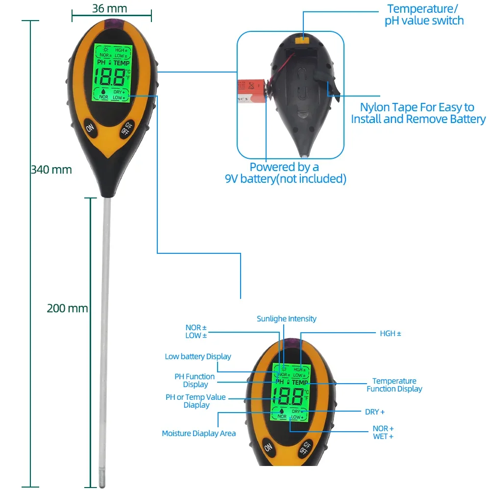 Function: PH Meter + Moisture Meter + Fertility Meter