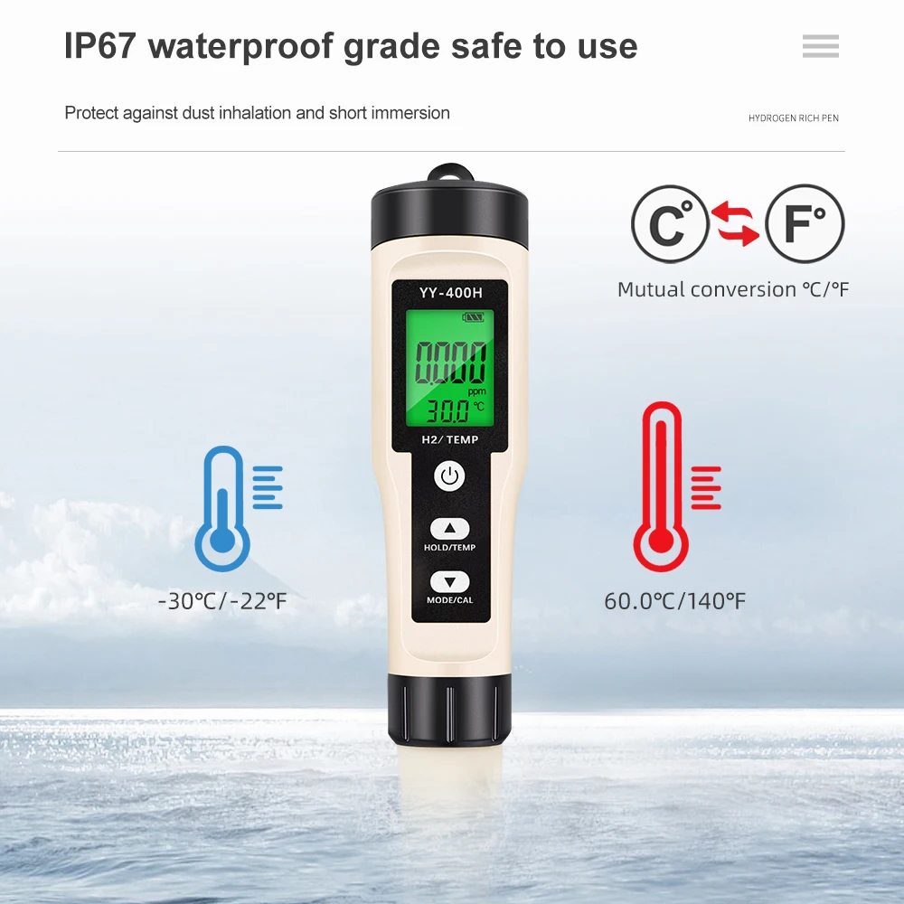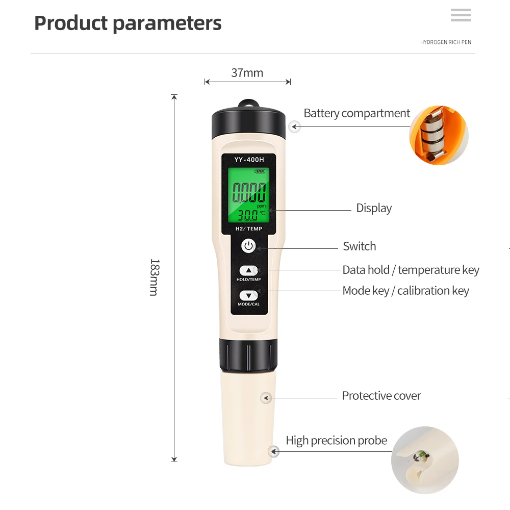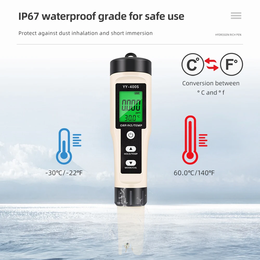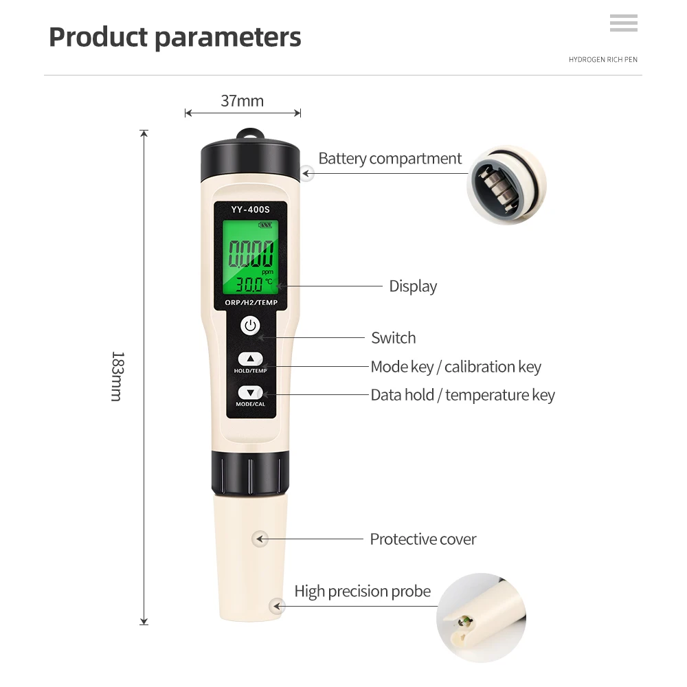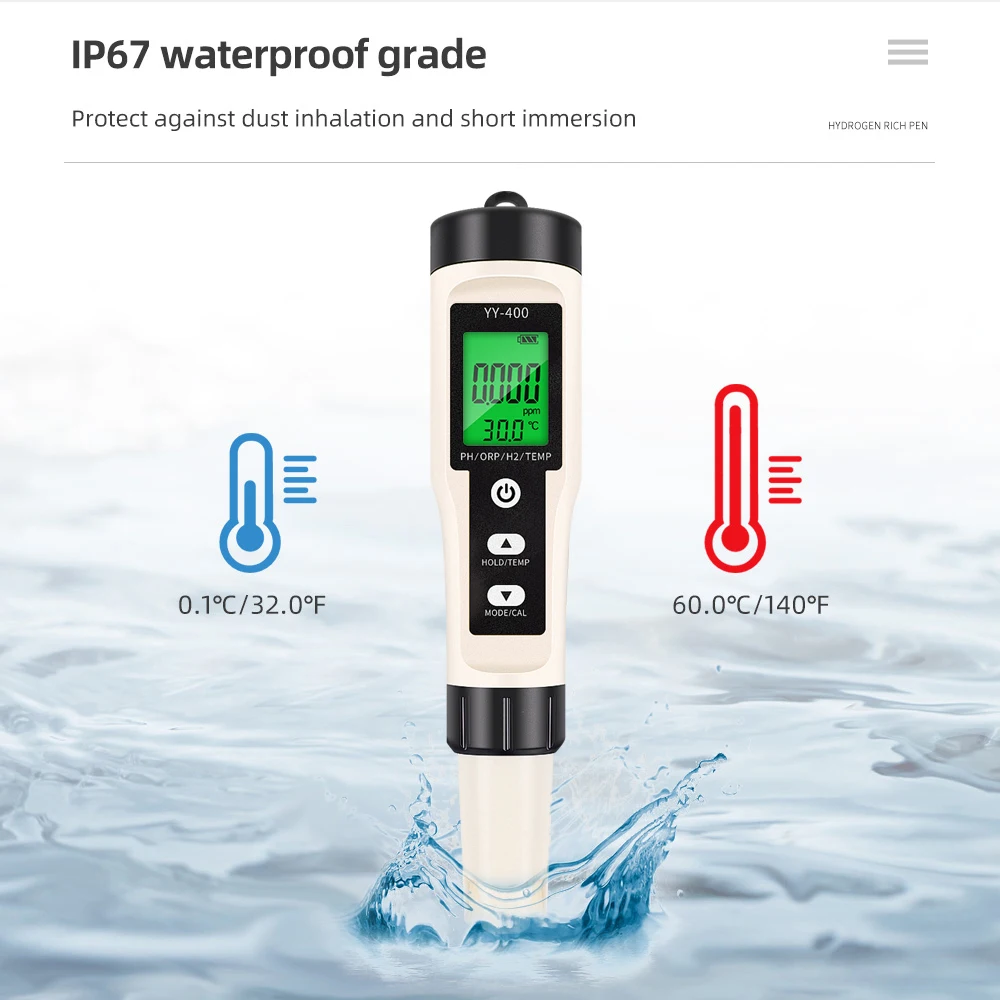 High-precision multi-function water quality tester, with the functions of measuring water PH value, ORP, hydrogen ion concentration, temperature and other functions. Automatic temperature compensation (0-60℃) measurement data update. It is easy to use, easy to carry, and it is good for the body to drink more water rich in hydrogen ions.